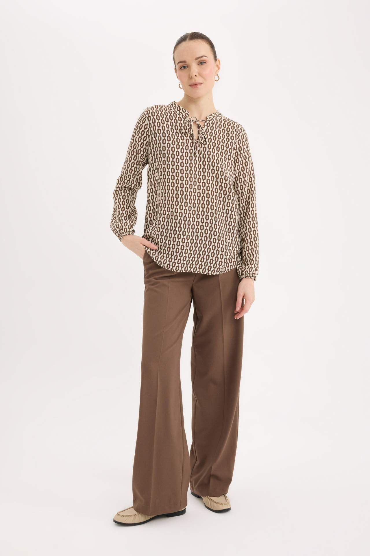 DeFacto Regular Fit Apaş Yaka Desenli Uzun Kollu Bluz