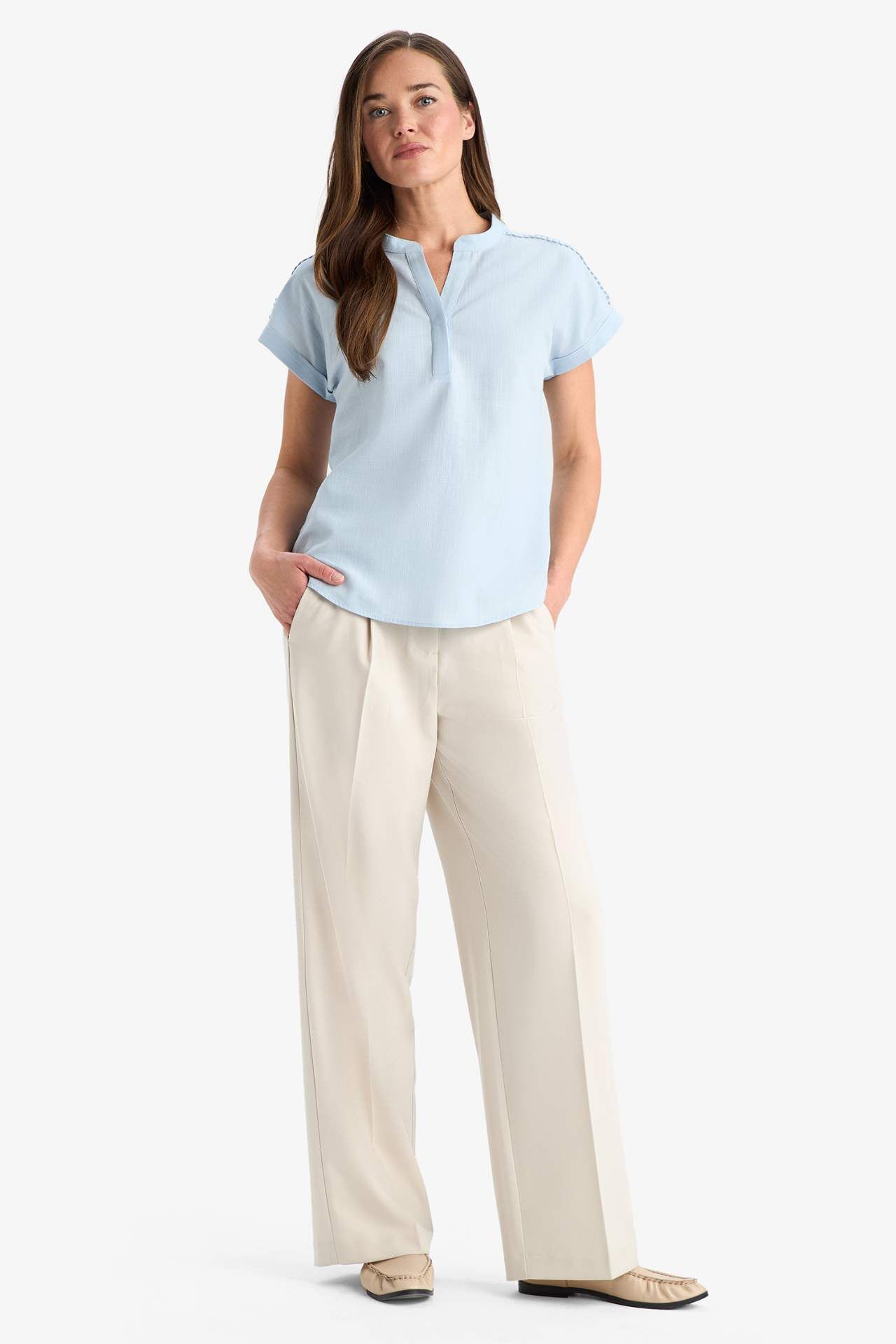 Apaş yaka detayına sahip bu regular fit kısa kollu bluz, flamlı pamuk kumaşıyla yumuşak ve nefes alabilir bir kullanım sunar. Günlük şıklığınızı rahatlıkla tamamlayan pratik bir parça. Pamuk 100%,Pamuk 100%,Pamuk 100%,Pamuk 100%,Pamuk 100%,Pamuk 100%,Pamuk 100% Manken Bedeni: Göğüs: 83 Boy: 1,78 Basen: 90 Bel: 62
