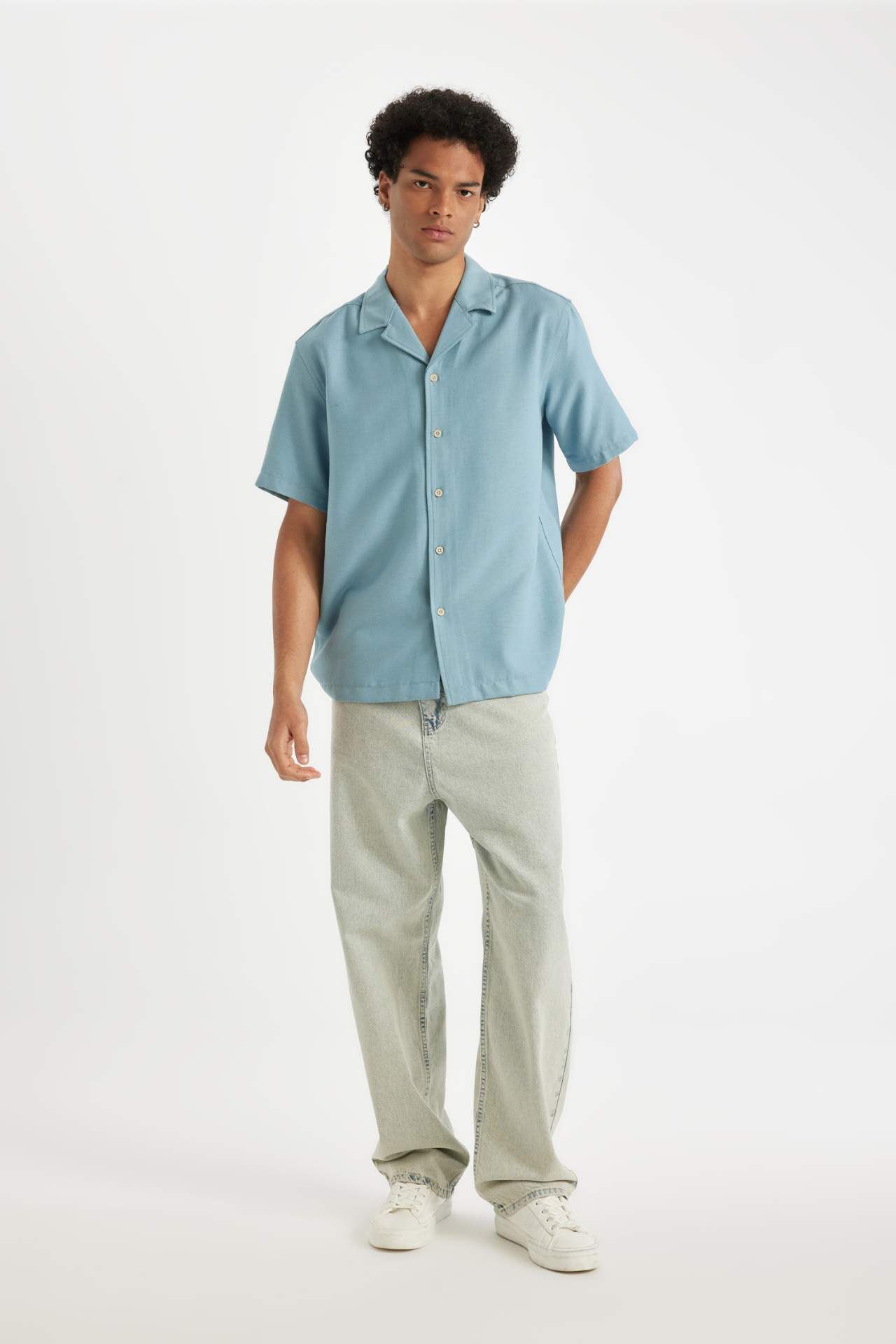 DeFactoFit Regular Fit Apaş Yaka Kısa Kollu Gömlek D8326AX24HSBE299