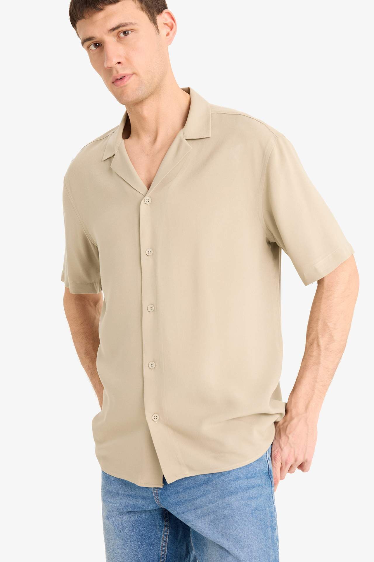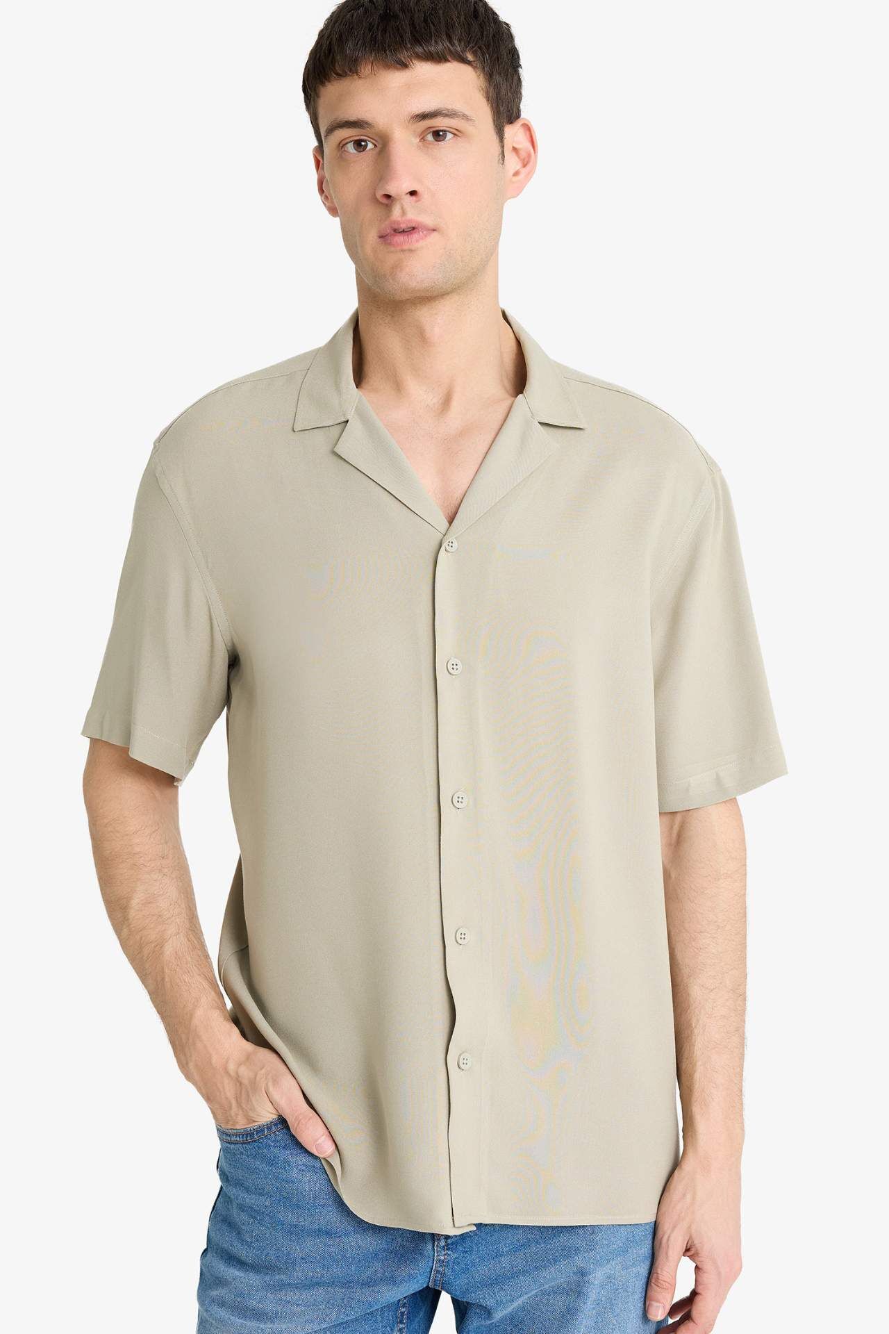 DeFacto Regular Fit Apaş Yaka Yazlık Kısa Kollu Gömlek E2533AX25SMKH488
