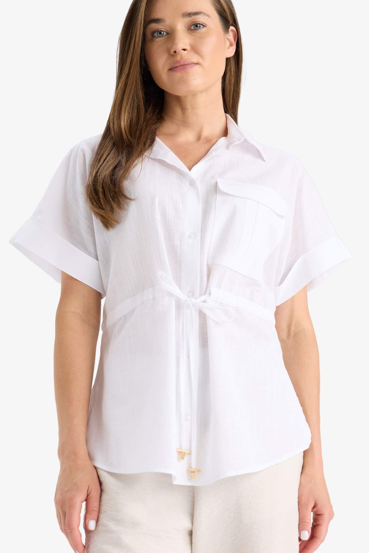 DeFacto Regular Fit Bağcıklı Flamlı Pamuk Kısa Kollu Gömlek F3416AX25HSWT79