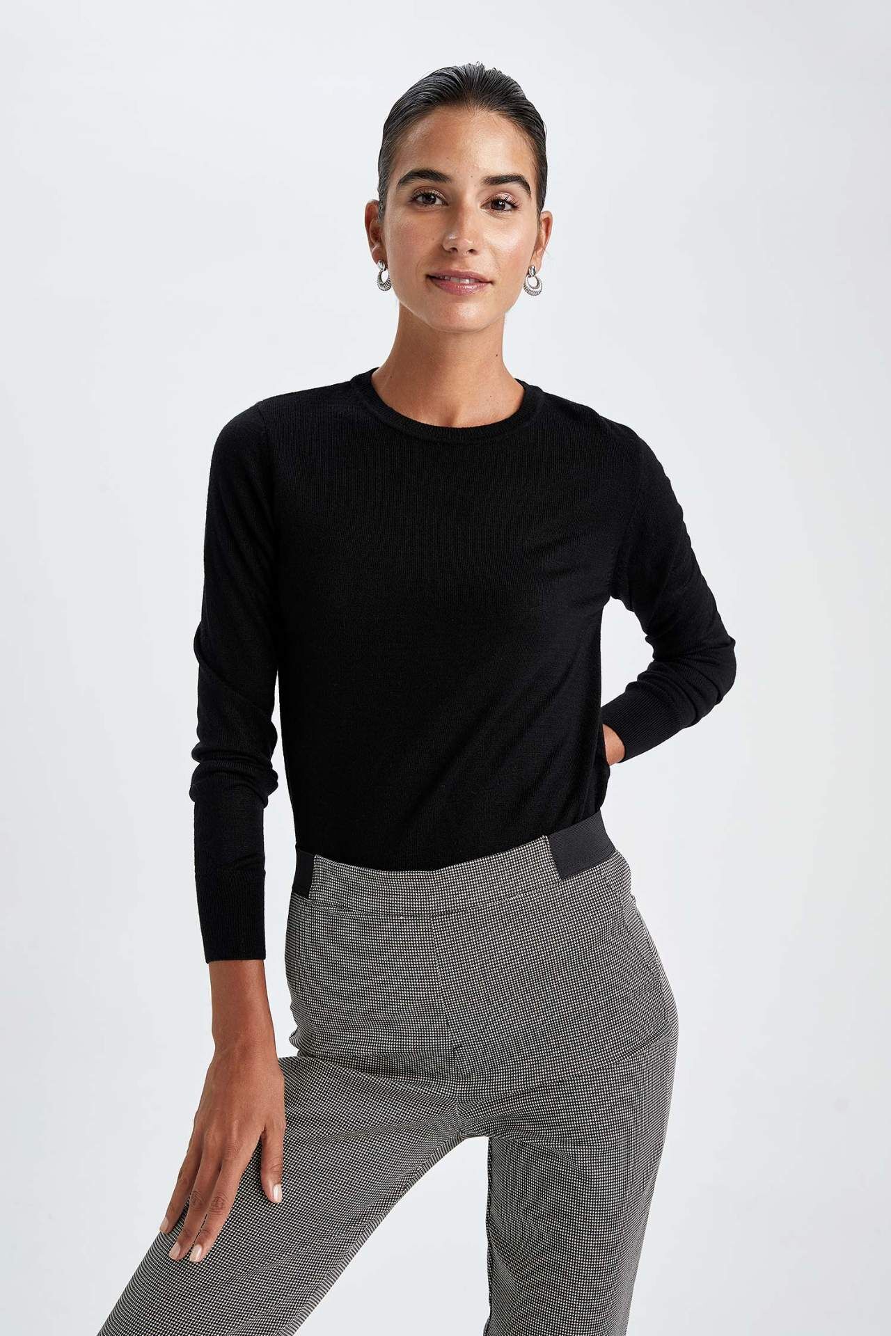 DeFacto Regular Fit Basic Bisiklet Yaka Ekstra Yumuşak Kaşmir Dokulu Triko Kazak