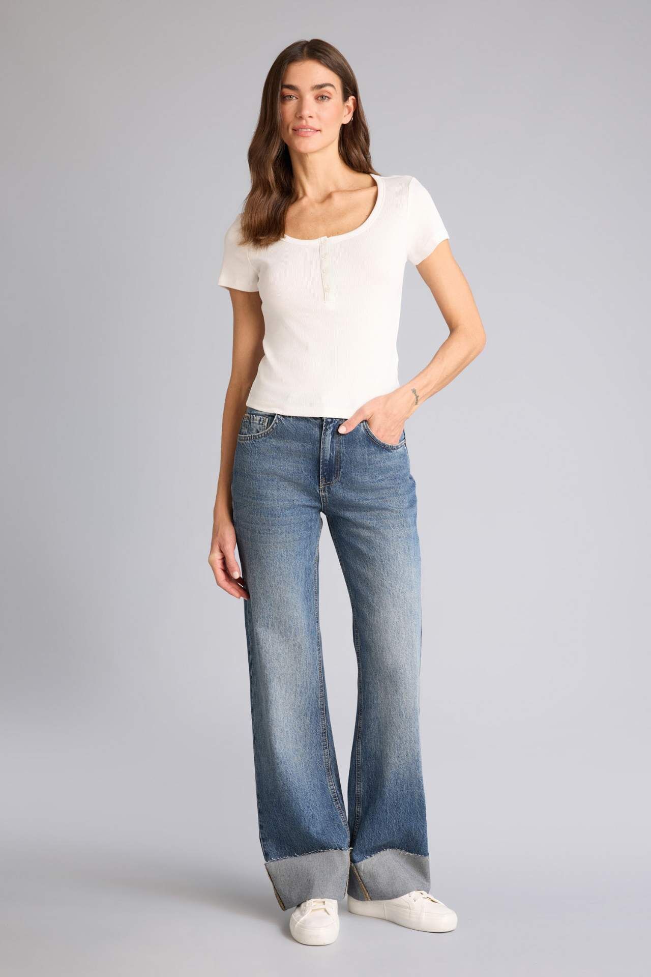 Regular Fit Basic Fitilli Kaşkorse Tişört, rahat kesimi ve esnek kaşkorse kumaşıyla gün boyu konfor sağlar. Minimal tasarımı, günlük kombinlerinize sade ve şık bir dokunuş katar. Pamuk 97%,Elastan 3% Manken Bedeni: Göğüs: 89 Boy: 1,78 Basen: 92 Bel: 63