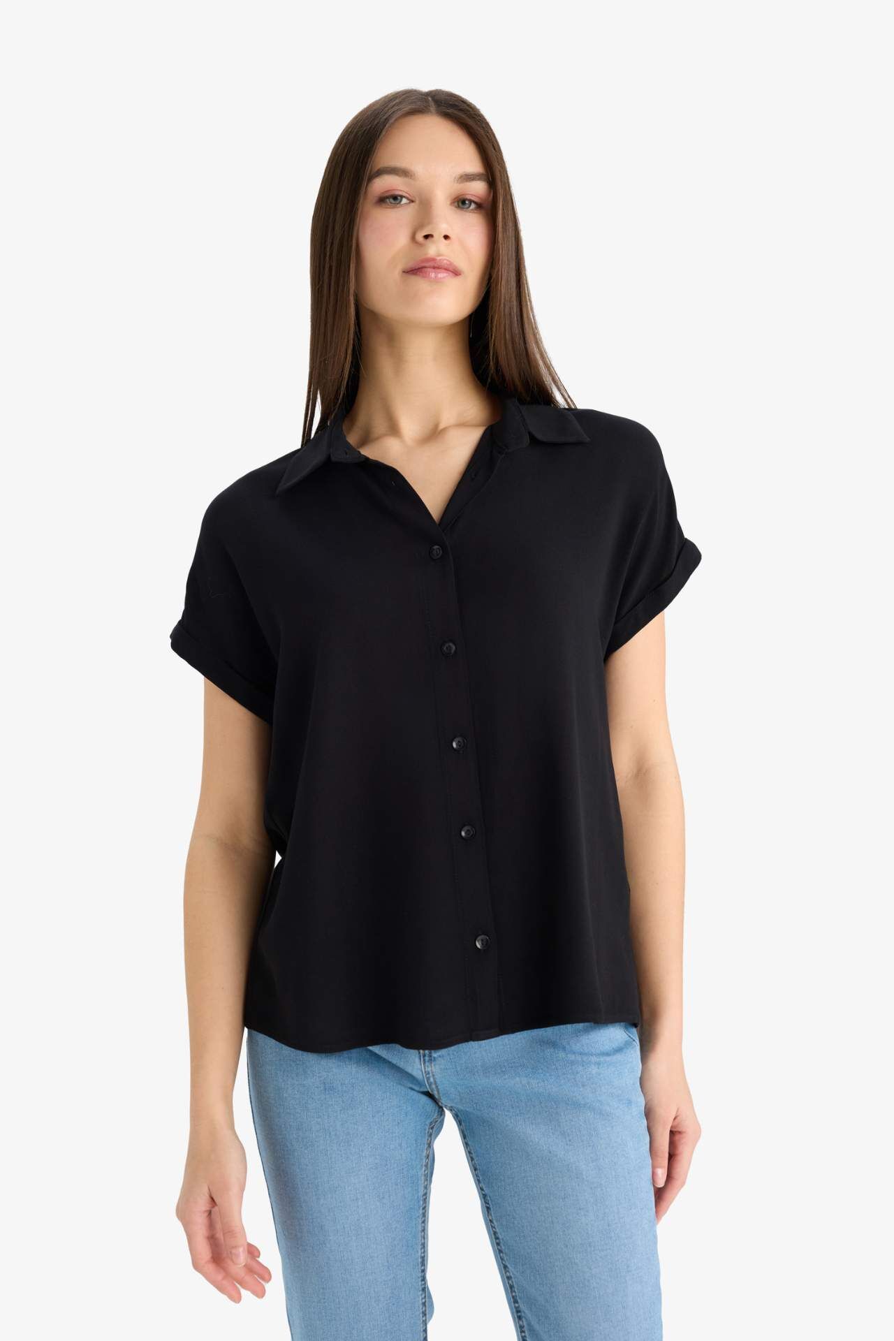 DeFacto Regular Fit Basic Düz Viskon Kısa Kollu Gömlek N7819AZ25SPBK27