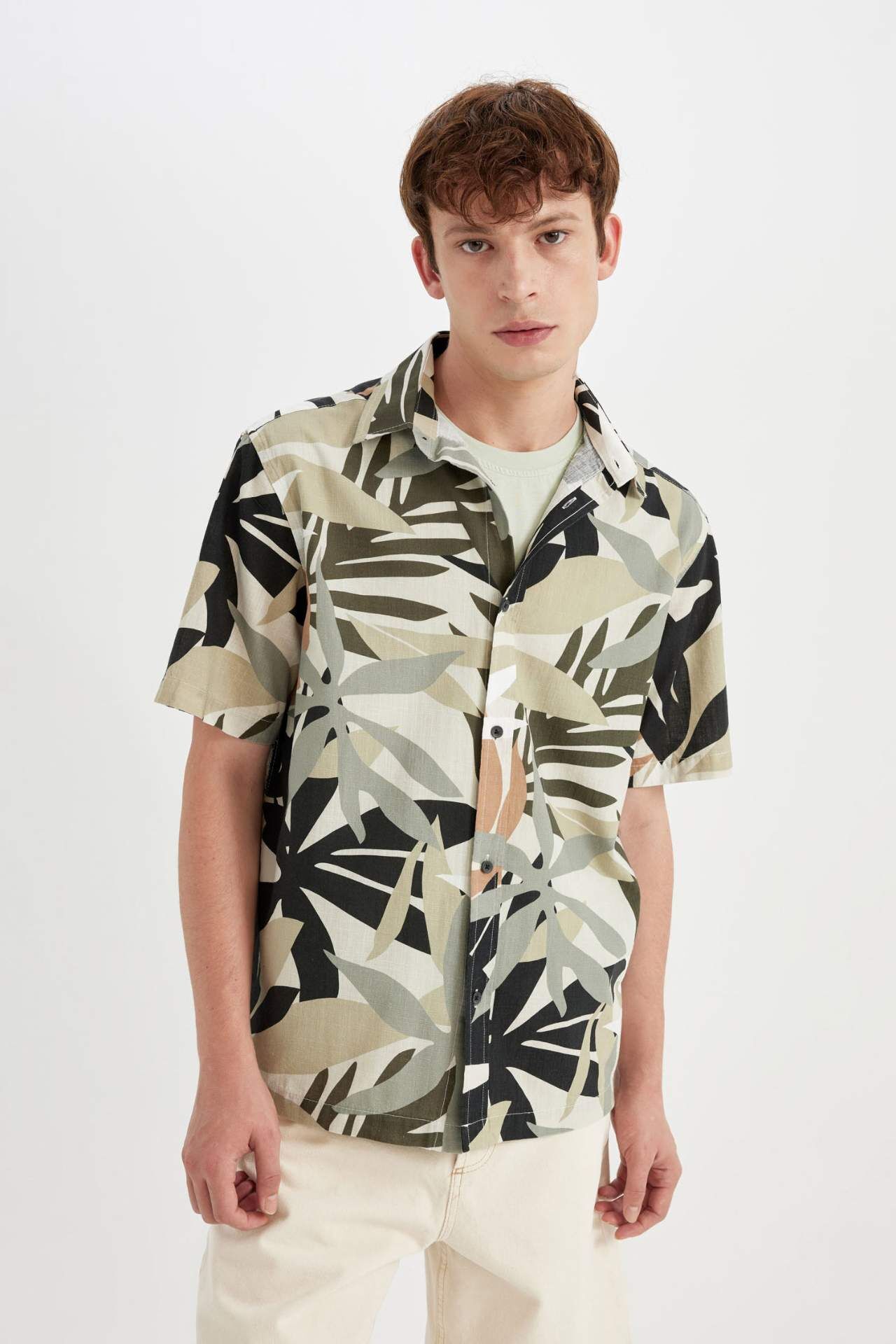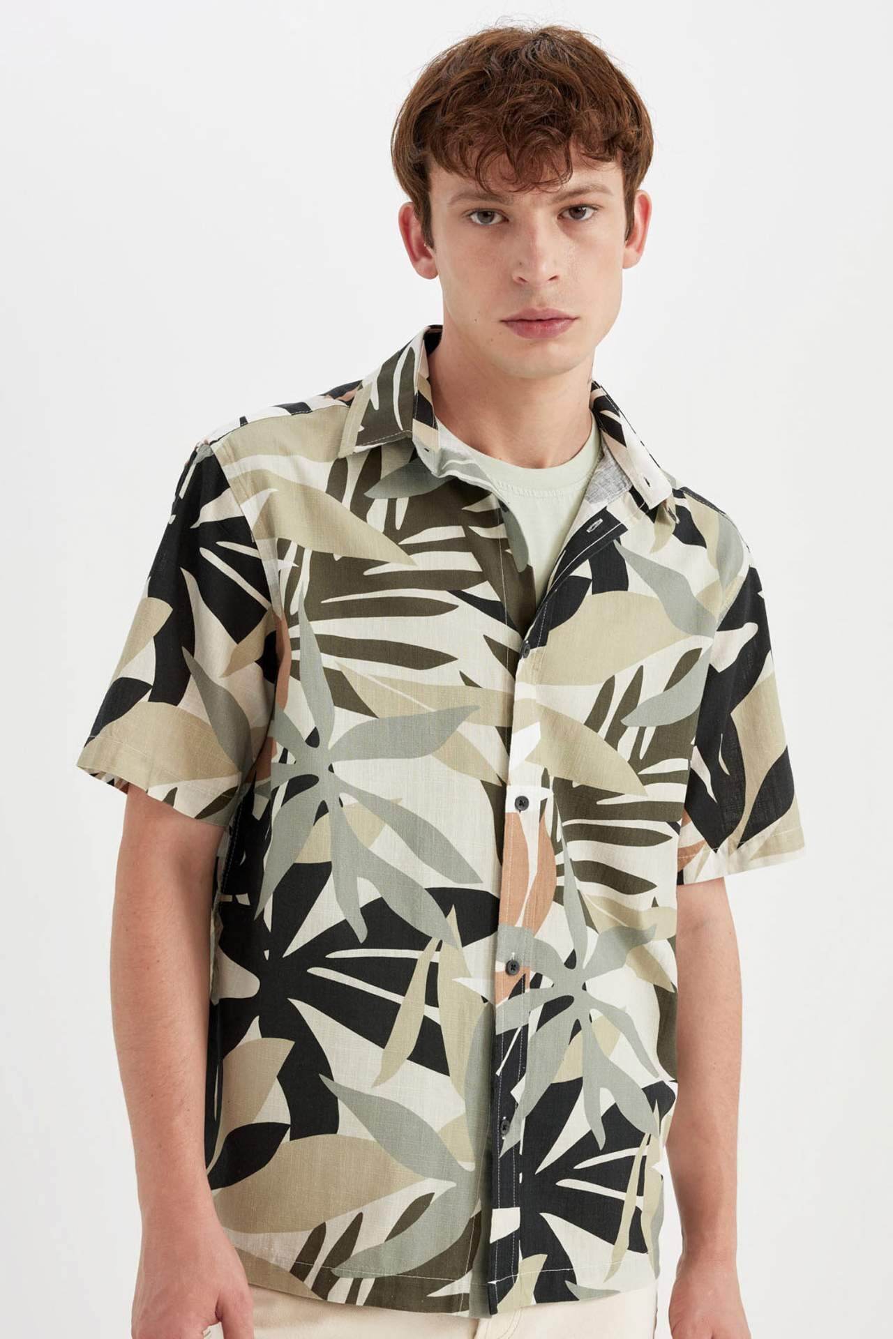 DeFactoFit Regular Fit Baskılı Pamuklu Kısa Kollu Gömlek C7667AX24SMKH373