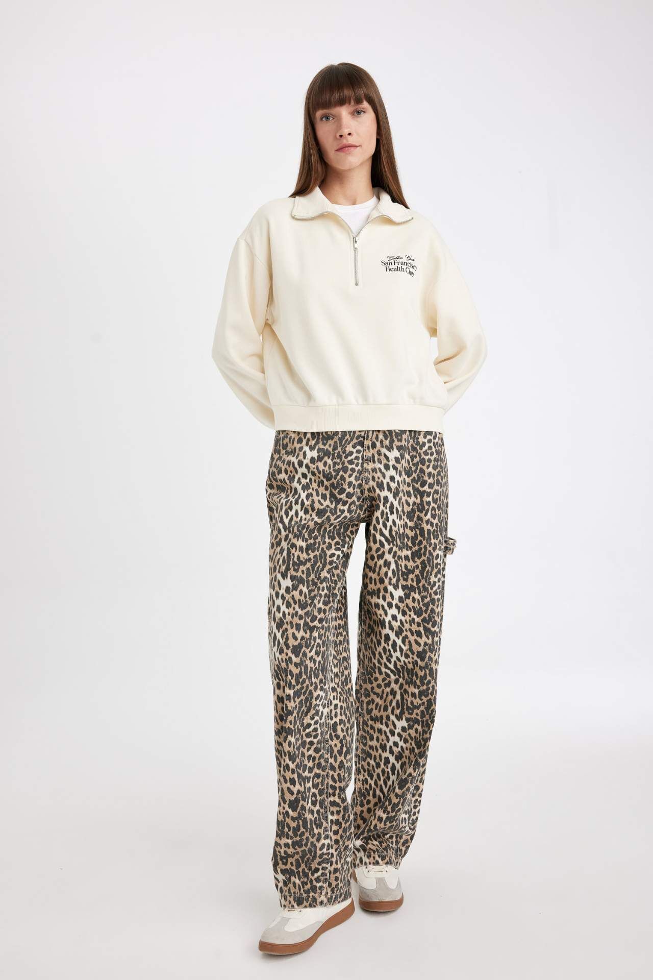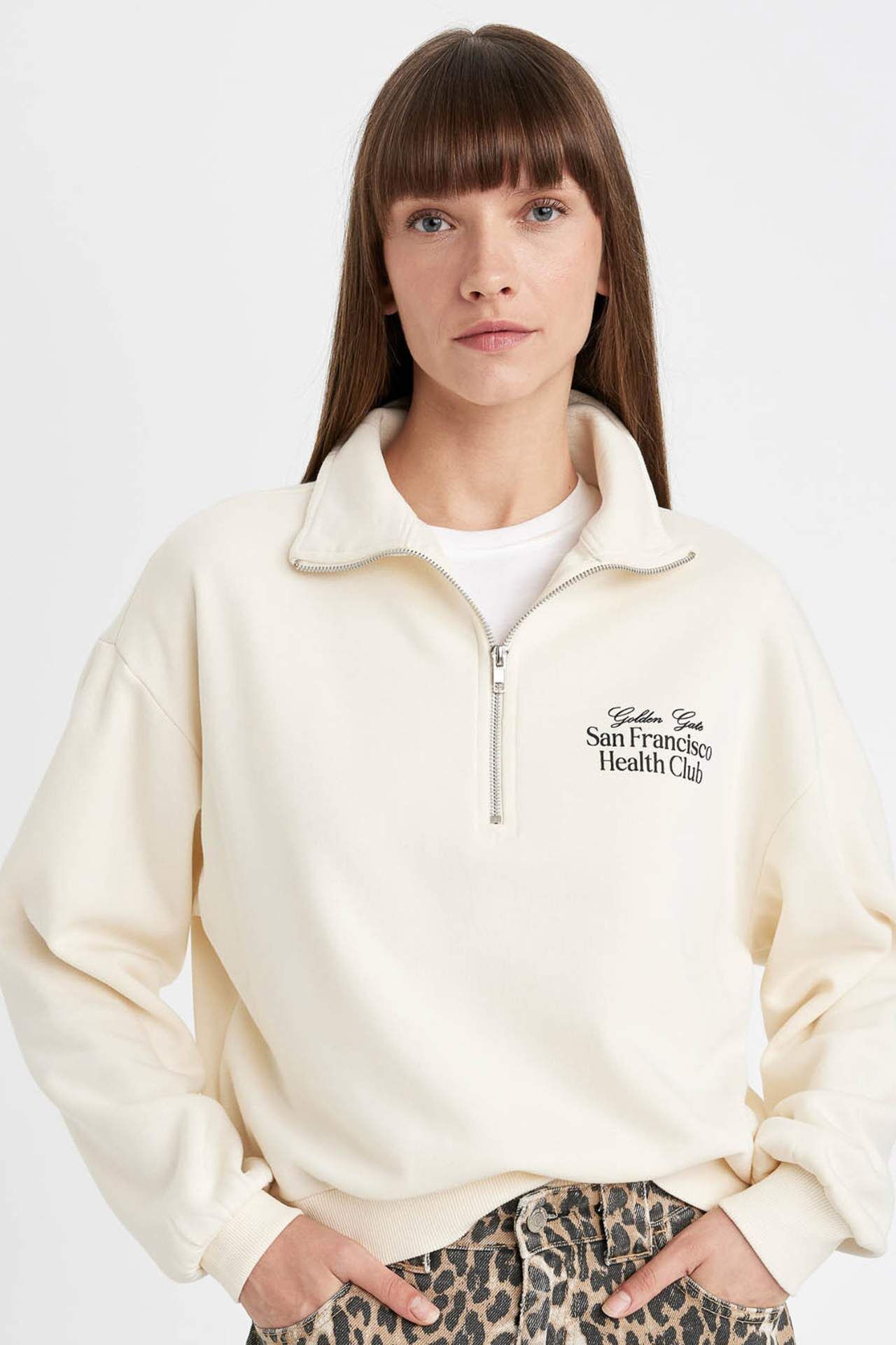DeFacto Regular Fit Baskılı Yarım Fermuarlı Dik Yaka Kalın Sweatshirt
