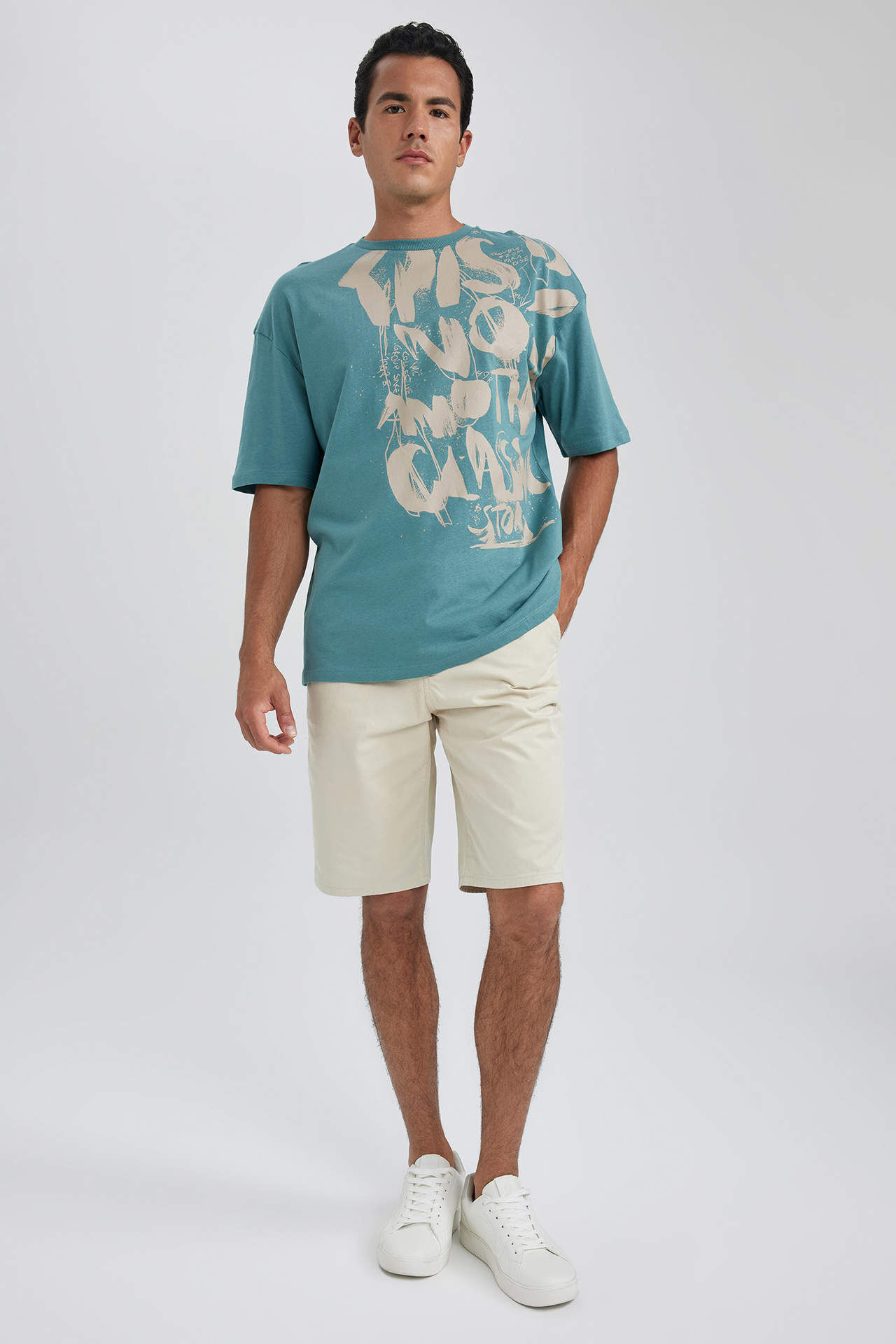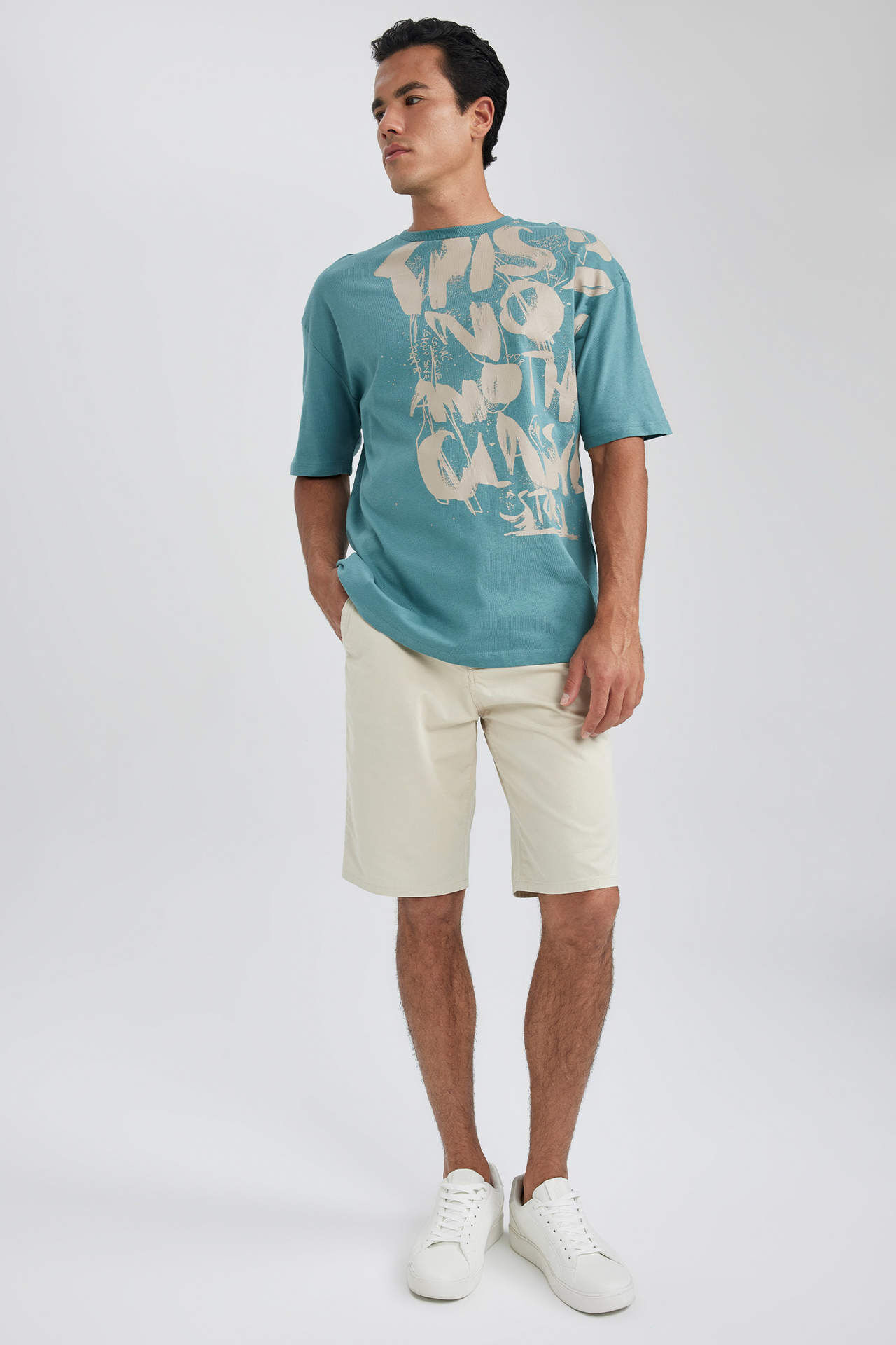 DeFacto Regular Fit Beli Bağcıklı Bermuda Şort