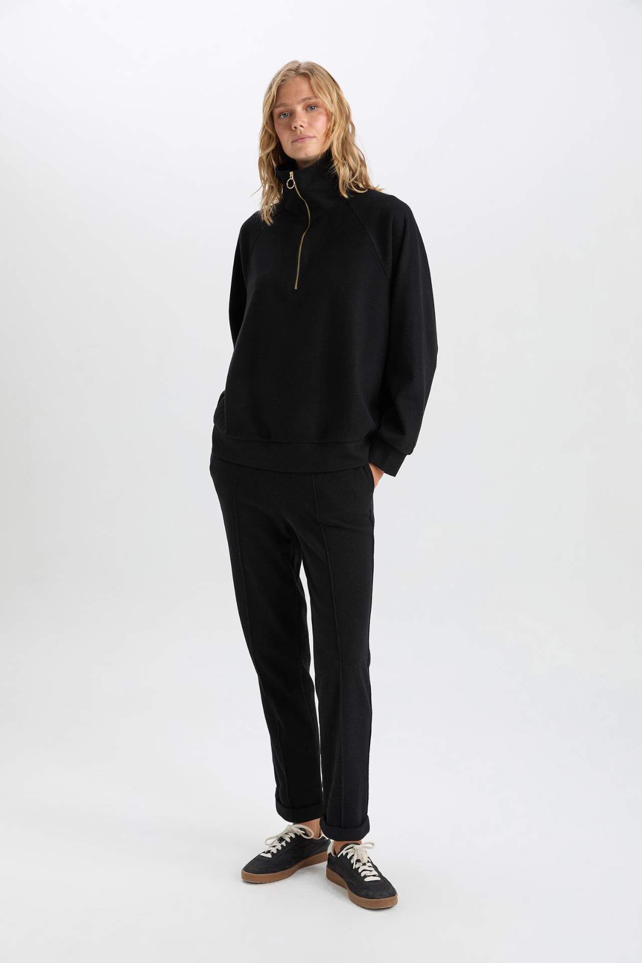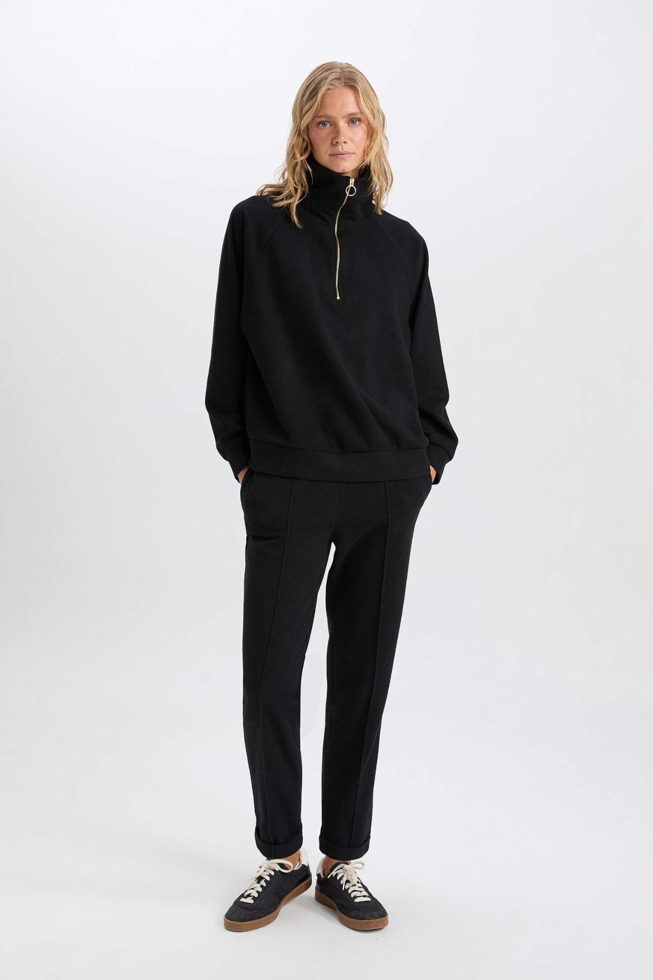 DeFacto Regular Fit Beli Lastikli Basic Düz Bağcıklı Cepli Paça Katlamalı Uzun Boy Siyah Pantolon