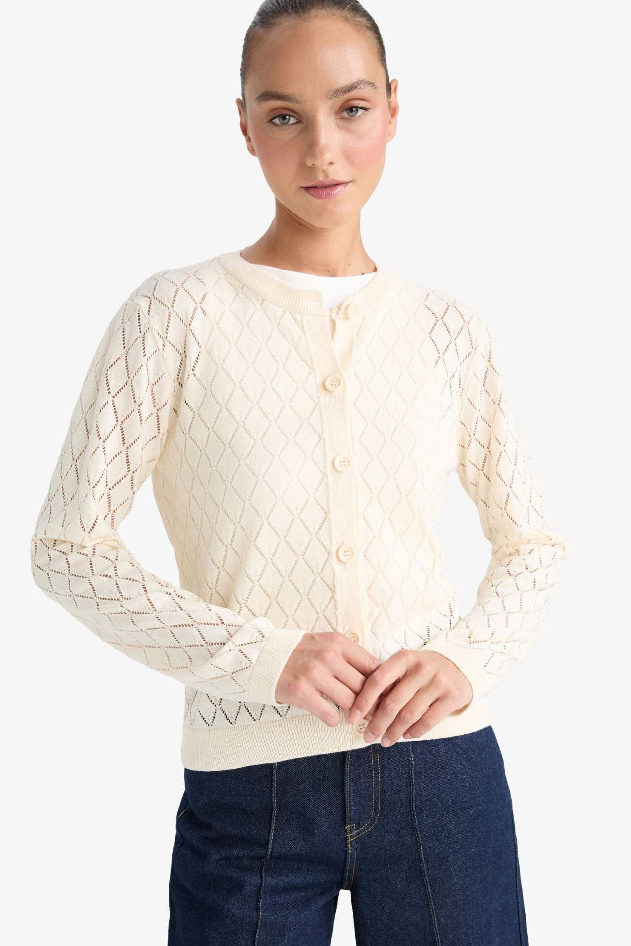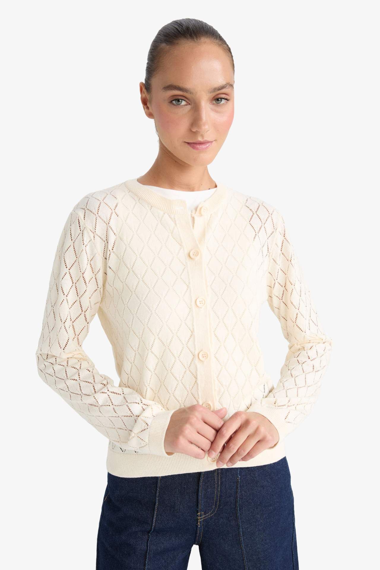 Regular Fit Bisiklet Yaka Ajurlu Düğmeli Triko Hırka G0191AX25AUER105