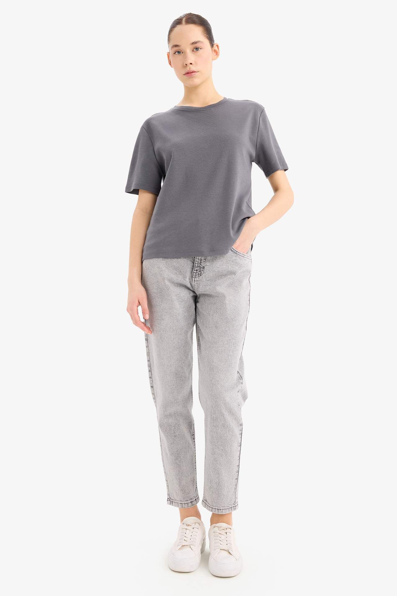 Yetişkinler için özel olarak tasarlanmış kısa kollu tişört. Regular fit kalıbı ve düşük omuz detayıyla şık bir görünüm sunar. Antrasit rengi ve bisiklet yaka ile sonbahar/kış mevsim koşullarına uyum sağlar. Kadınlar için ideal bir seçim. Pamuk 100%,Pamuk 100%,Pamuk 100%,Pamuk 100%,Pamuk 100%