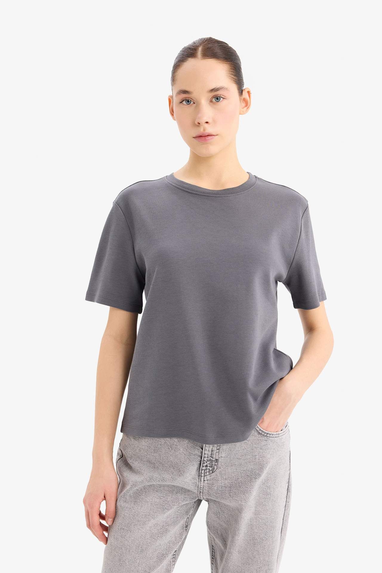 DeFacto Regular Fit Bisiklet Yaka Basic Düz Kalın Kumaş Kısa Kollu Tişört D7579AX25SPAR191