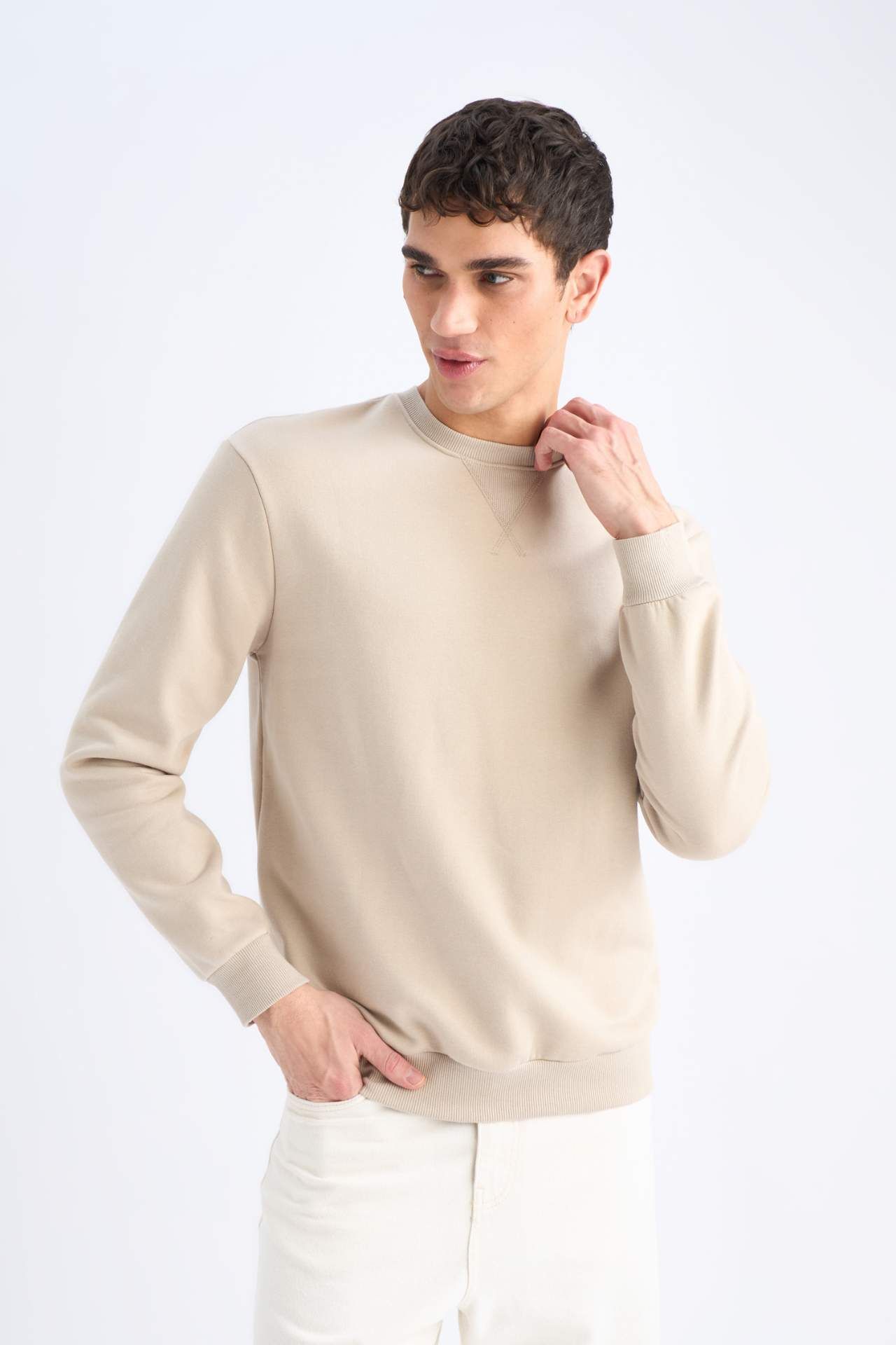 DeFacto Regular Fit Bisiklet Yaka Basic Düz Kalın Sweatshirt T3777AZ25SPBG735