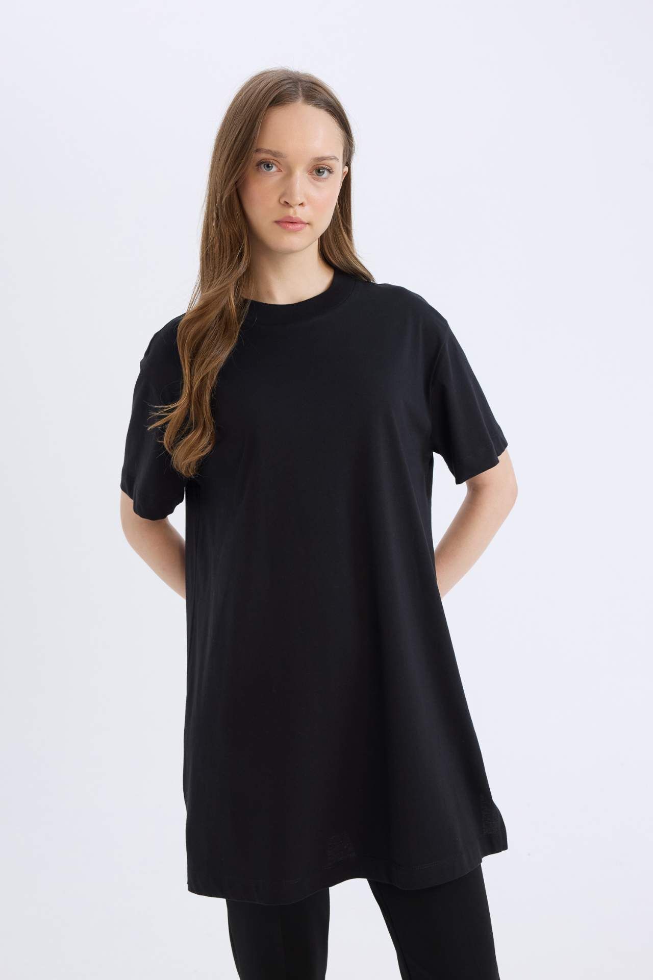 DeFacto Regular Fit Bisiklet Yaka Basic Düz Kısa Kollu Tişört Tunik A8351AX25SPBK27