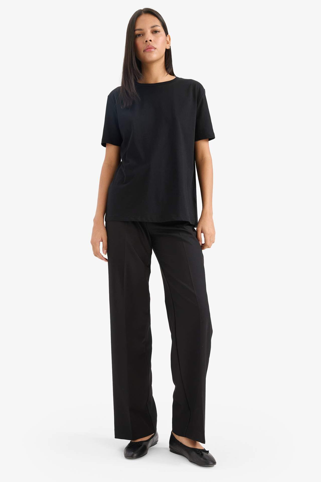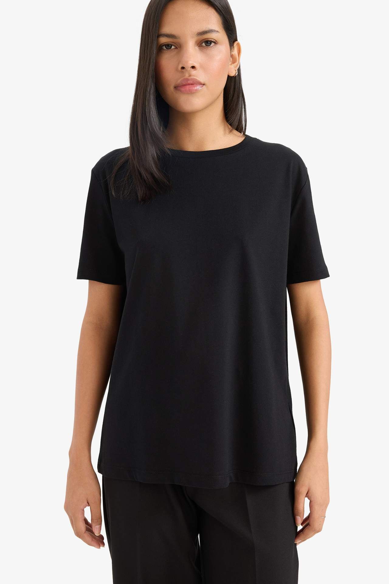 Regular Fit Bisiklet Yaka Basic Düz Penye Kısa Kollu Siyah Tişört