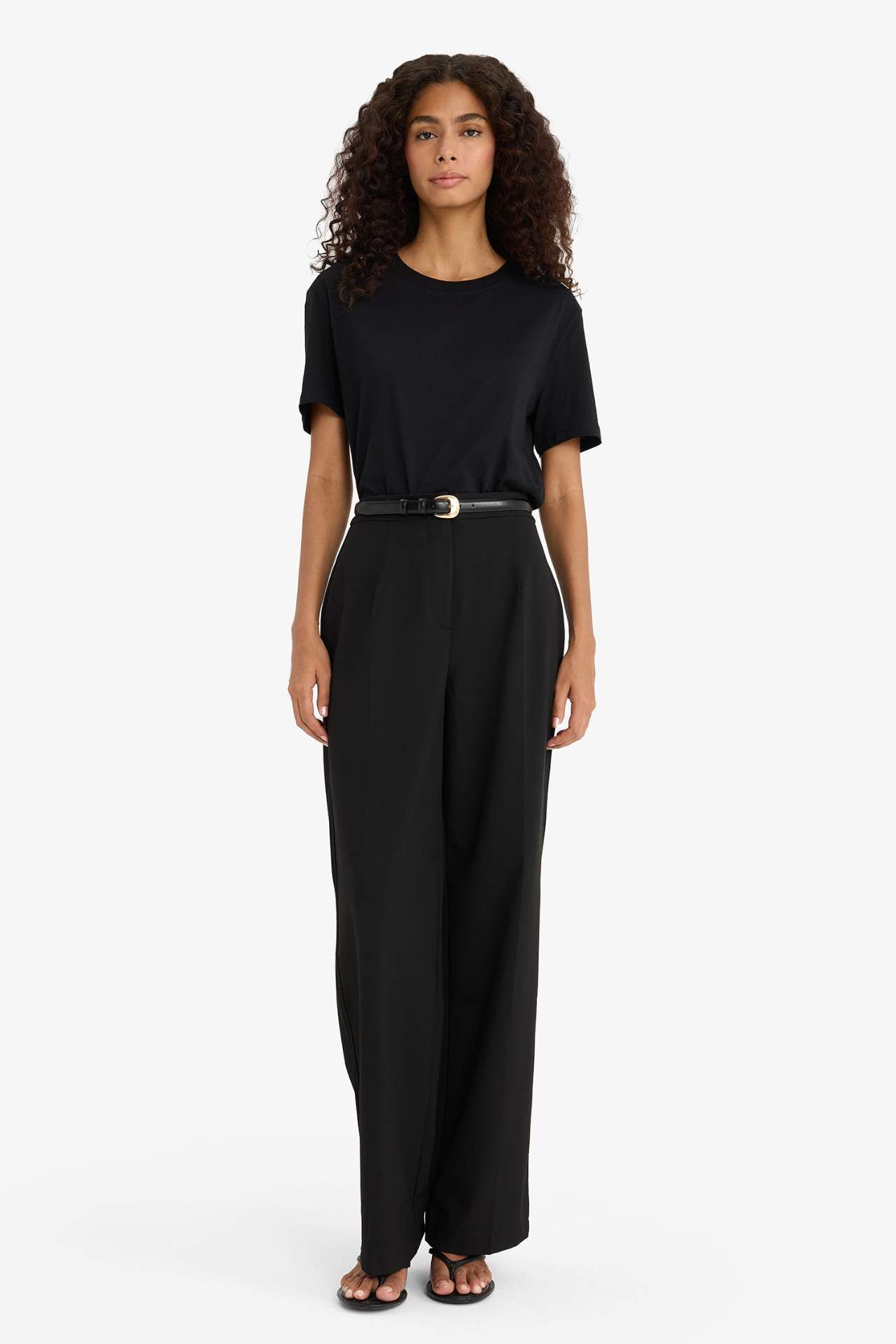 DeFacto Regular Fit Bisiklet Yaka Basic Düz Penye Kısa Kollu Siyah Tişört
