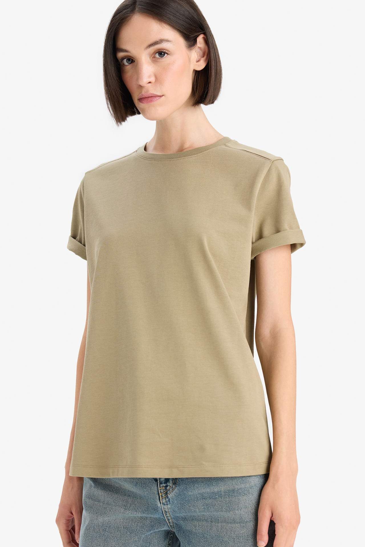 DeFacto Regular Fit Bisiklet Yaka Basic Düz Premium Kısa Kollu Tişört A9428AX25AUKH459