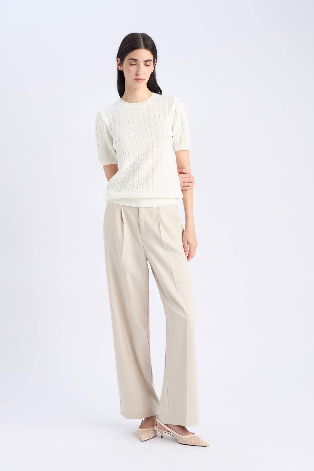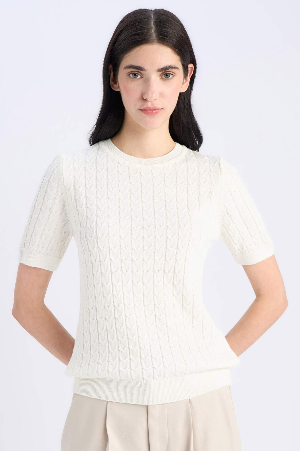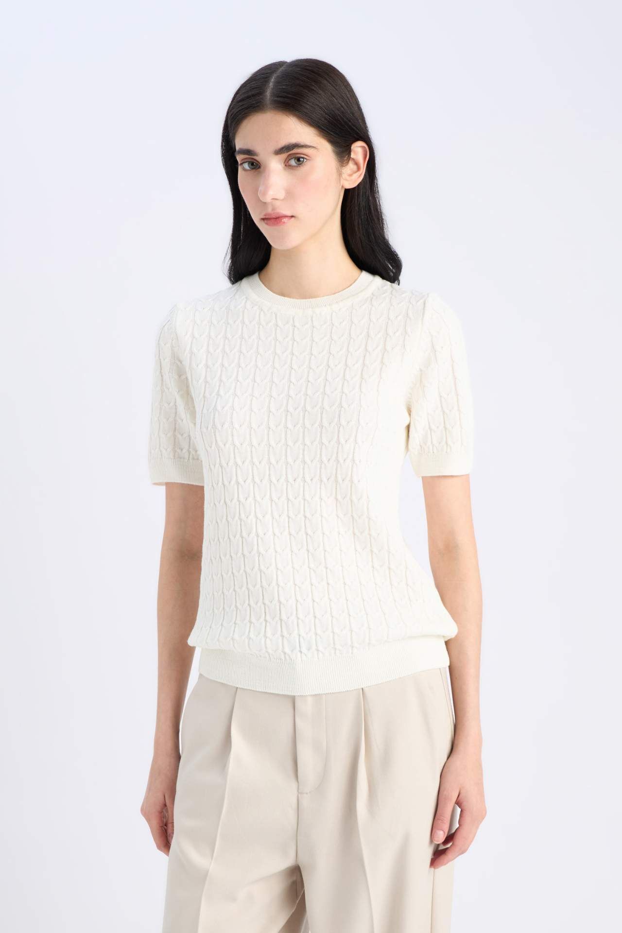 DeFacto Regular Fit Bisiklet Yaka Basic Düz Triko Kısa Kollu Kazak D3306AX25SMWT34
