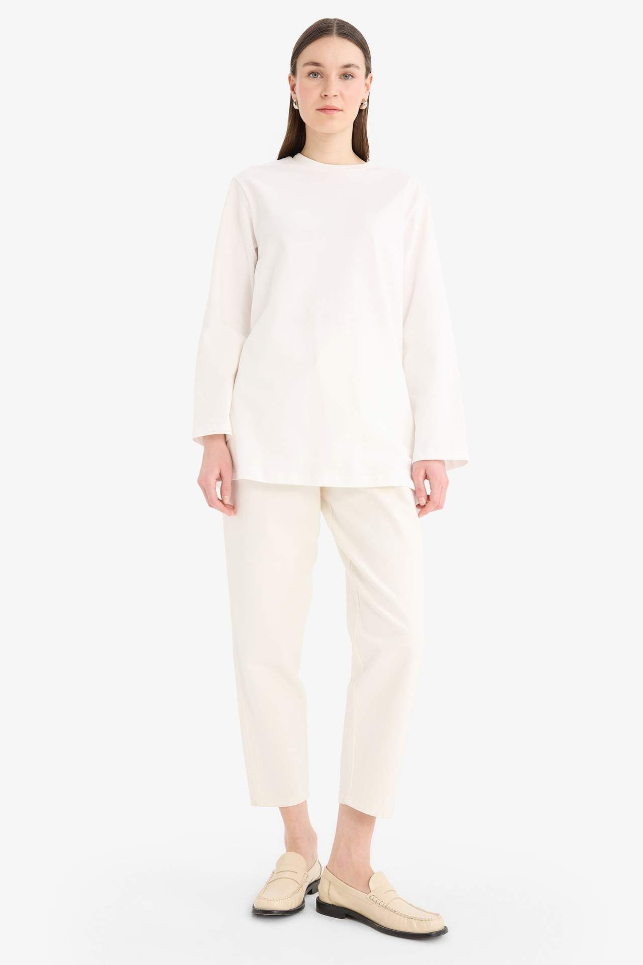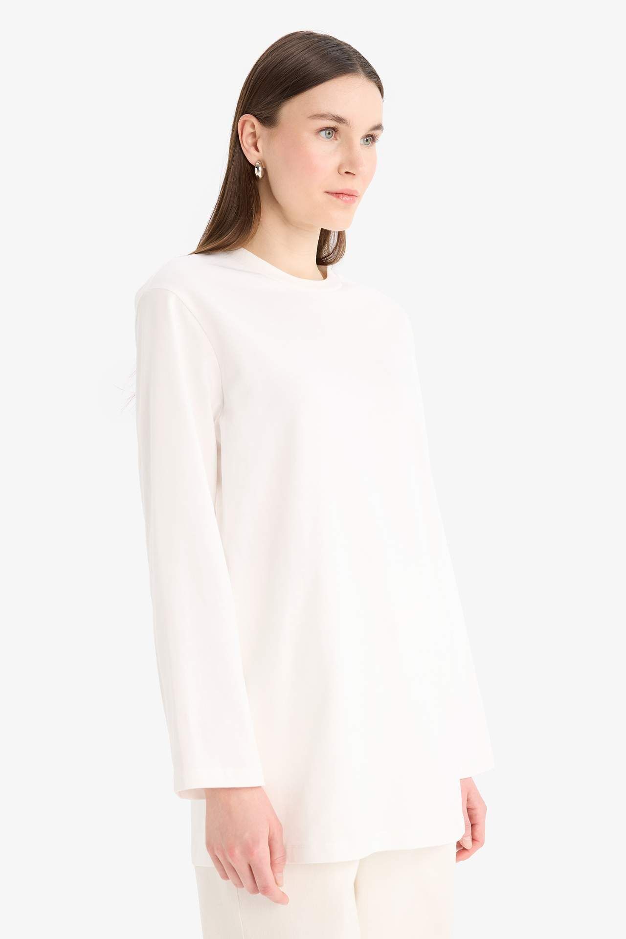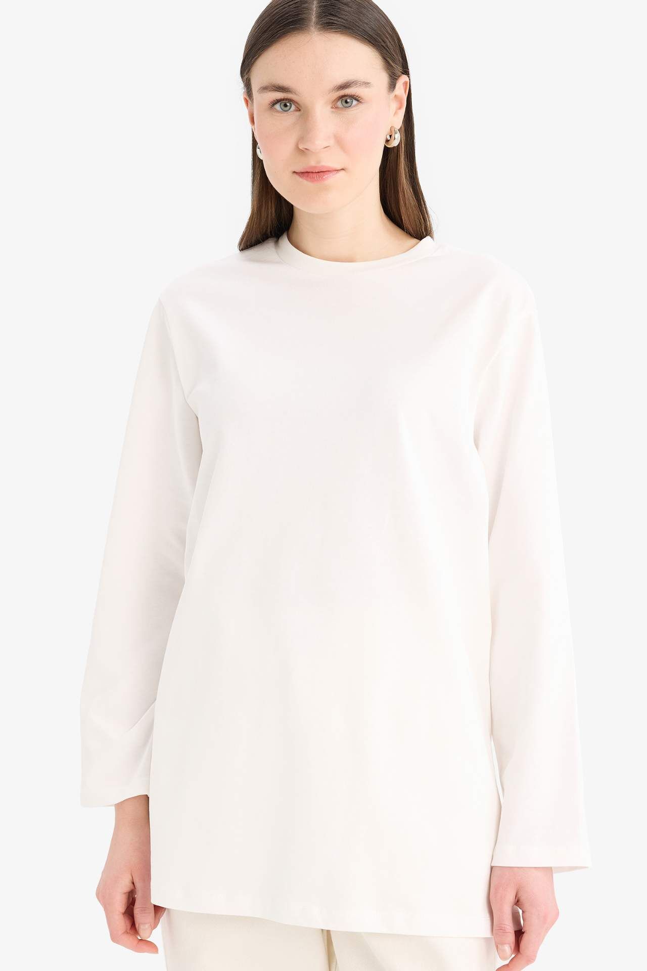 DeFacto Regular Fit Bisiklet Yaka Basic Düz Uzun Kollu Tişört Tunik D4897AX25SMER242
