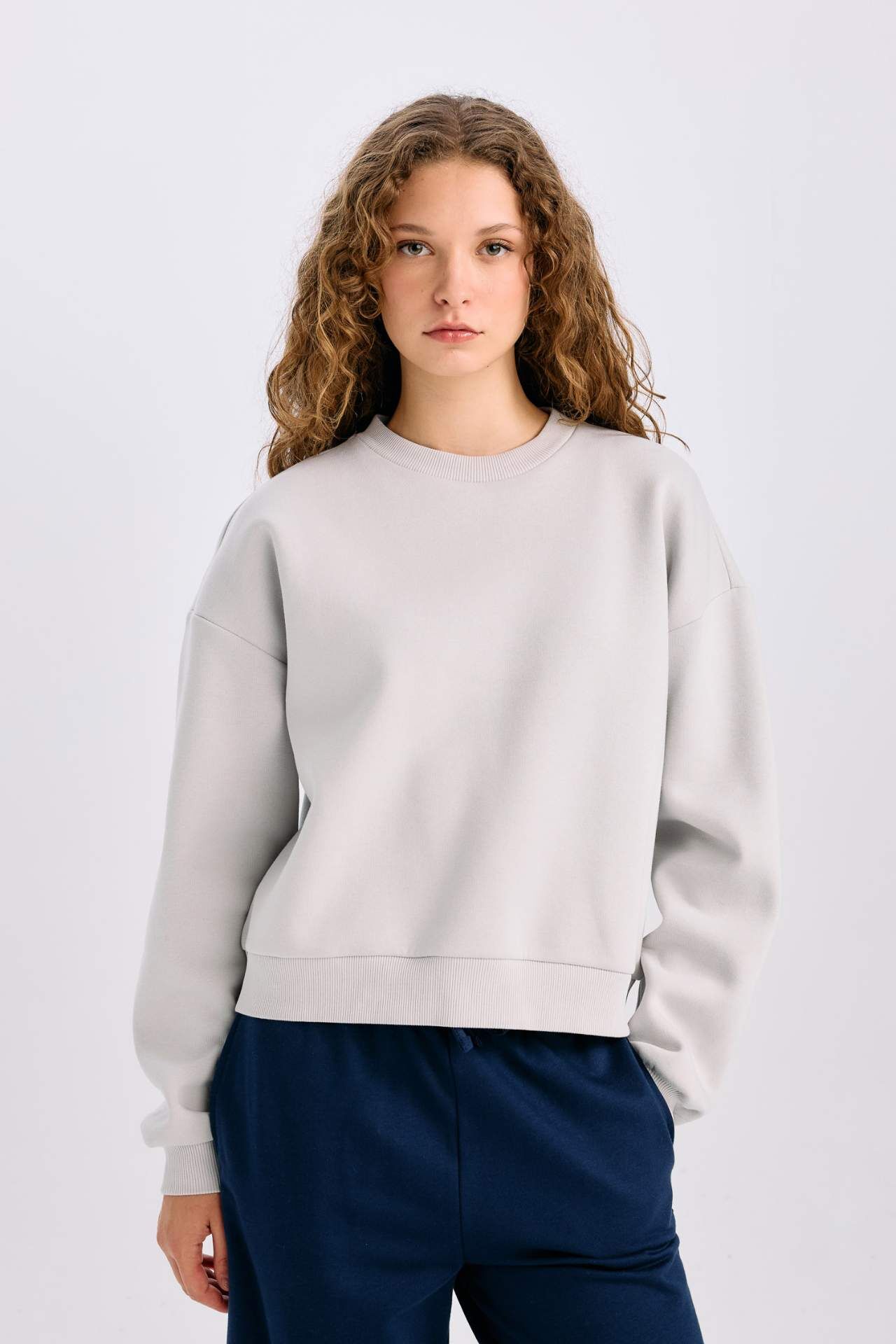 DeFacto Regular Fit Bisiklet Yaka Basic Kalın Kumaş Gri Sweatshirt