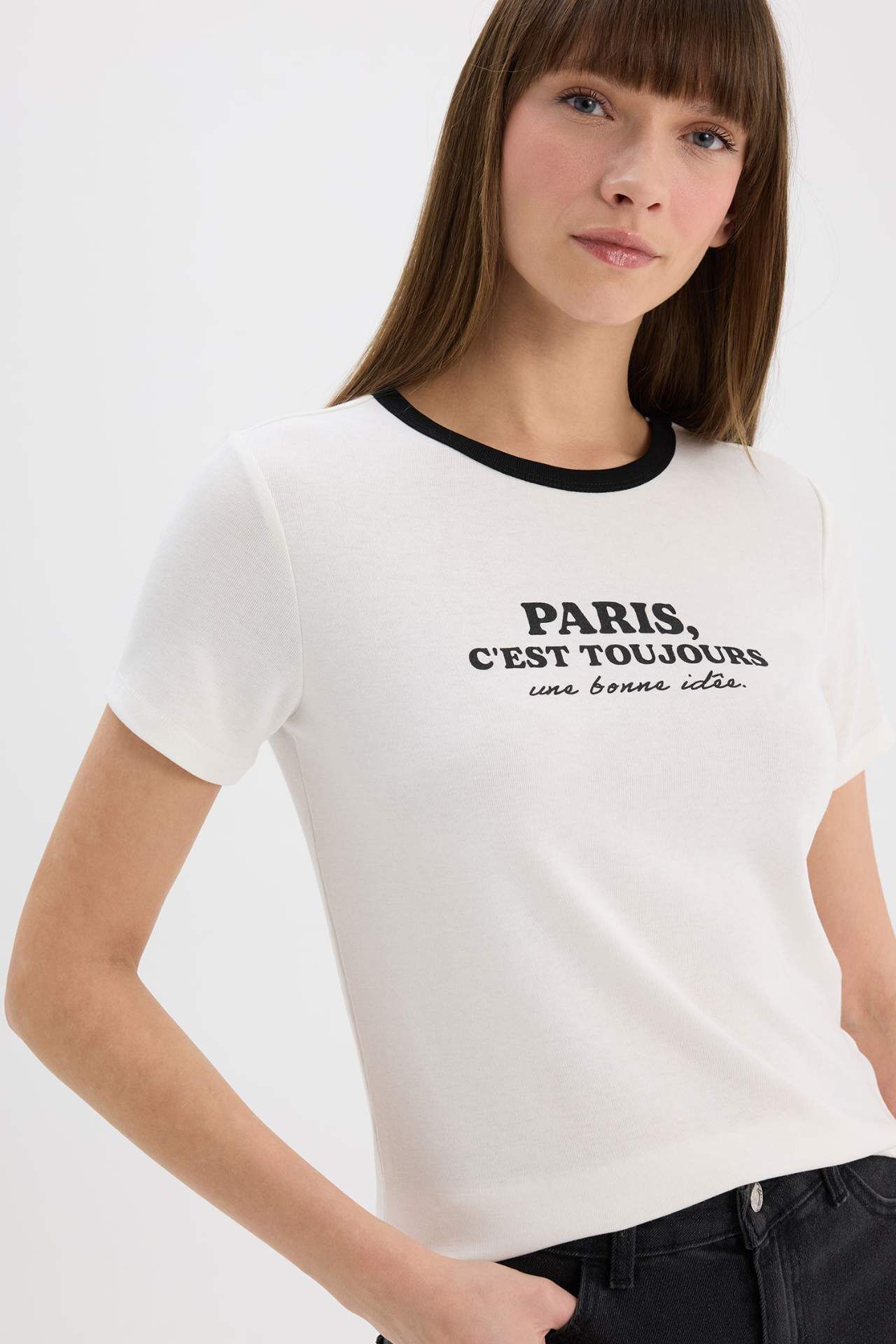DeFacto Regular Fit Bisiklet Yaka Baskılı Casual Ribana Kısa Kollu Tişört