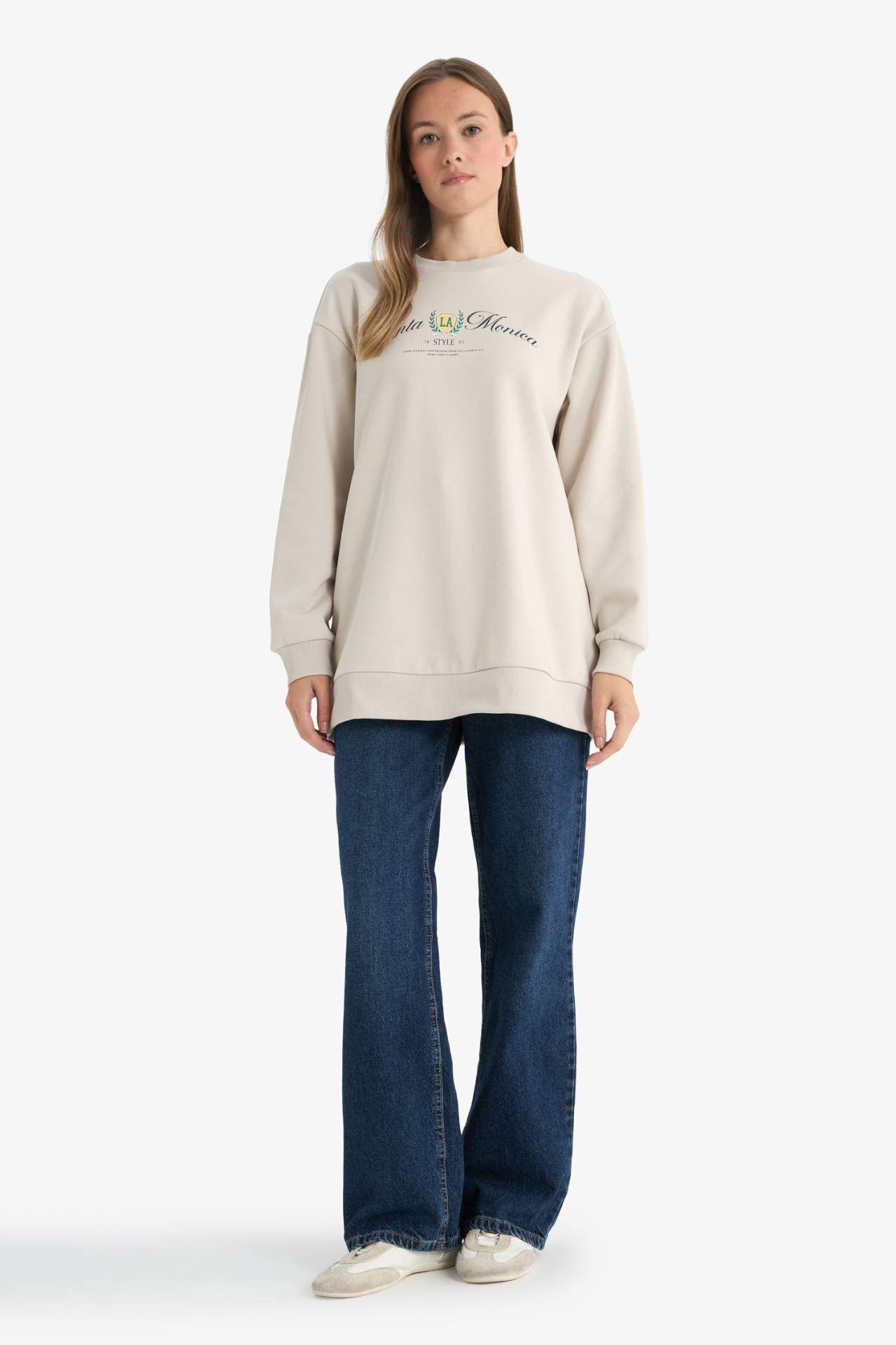 Regular Fit Bisiklet Yaka Baskılı İçi Yumuşak Tüylü Sweatshirt Tunik