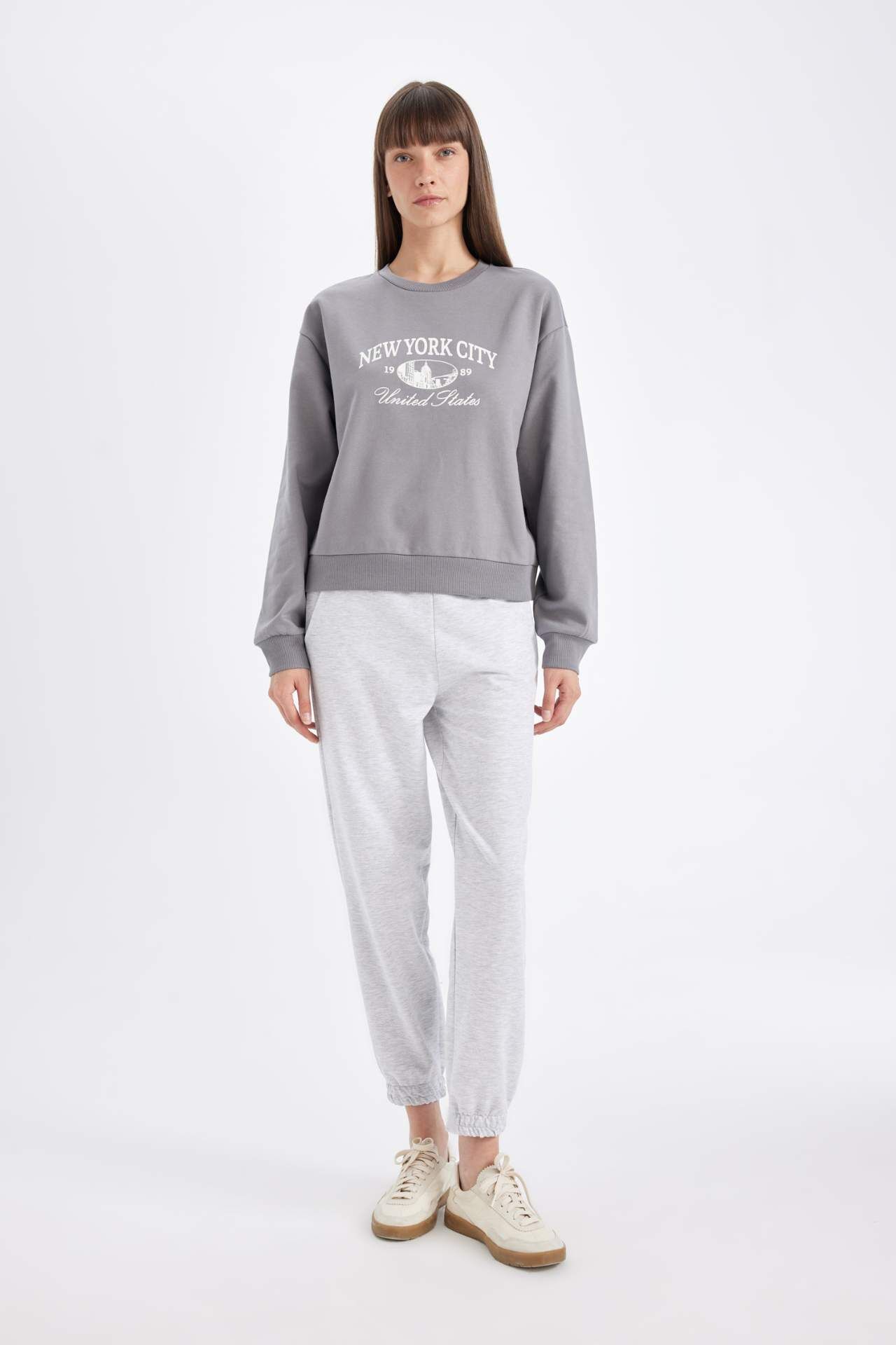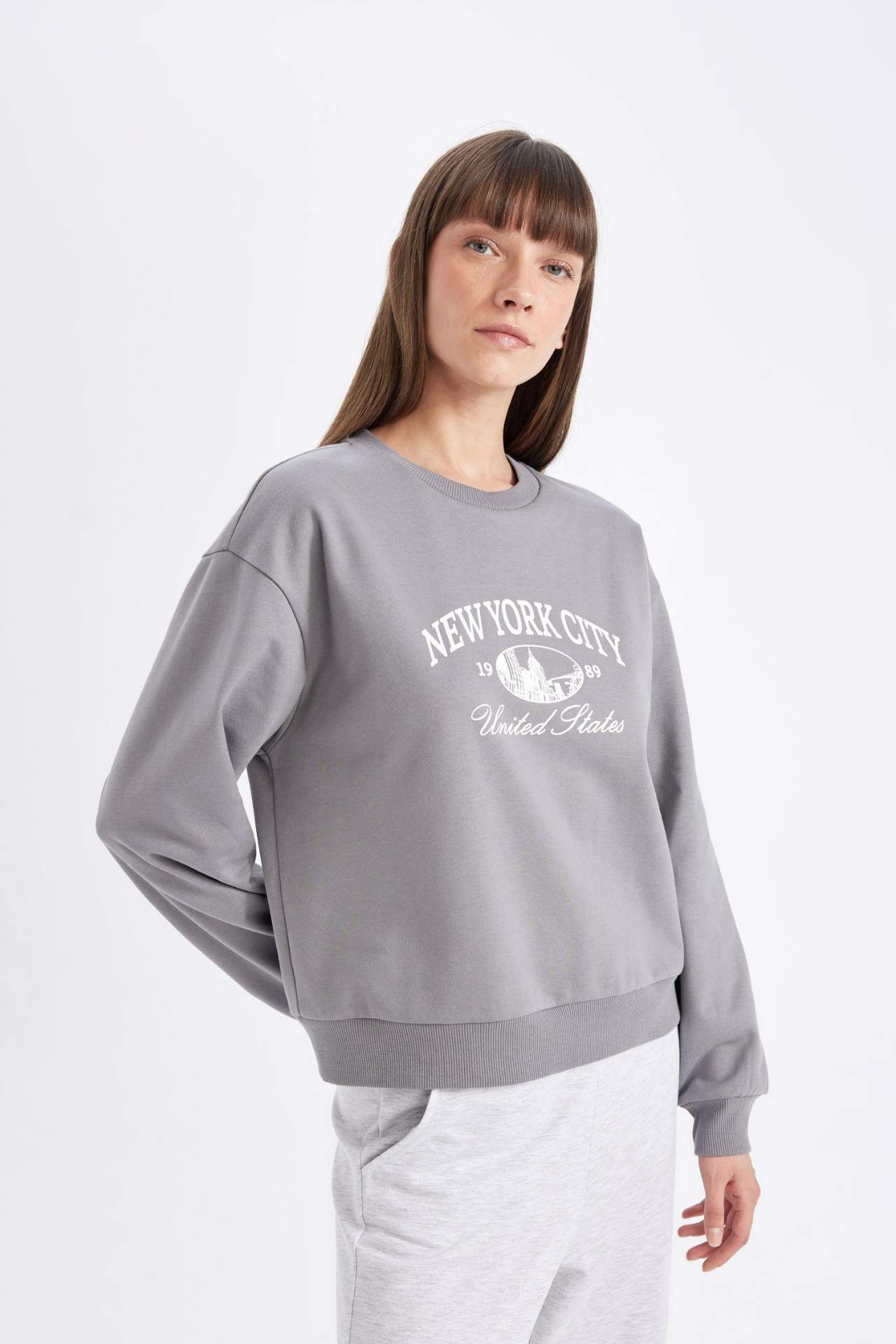 DeFacto DeFactoFit Regular Fit Bisiklet Yaka Baskılı İnce Sweatshirt