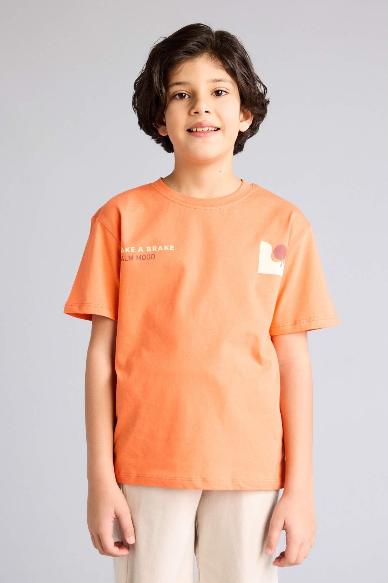 DeFacto Regular Fıt Bisiklet Yaka Baskılı Kısa Kollu Tişört Erkek Çocuk