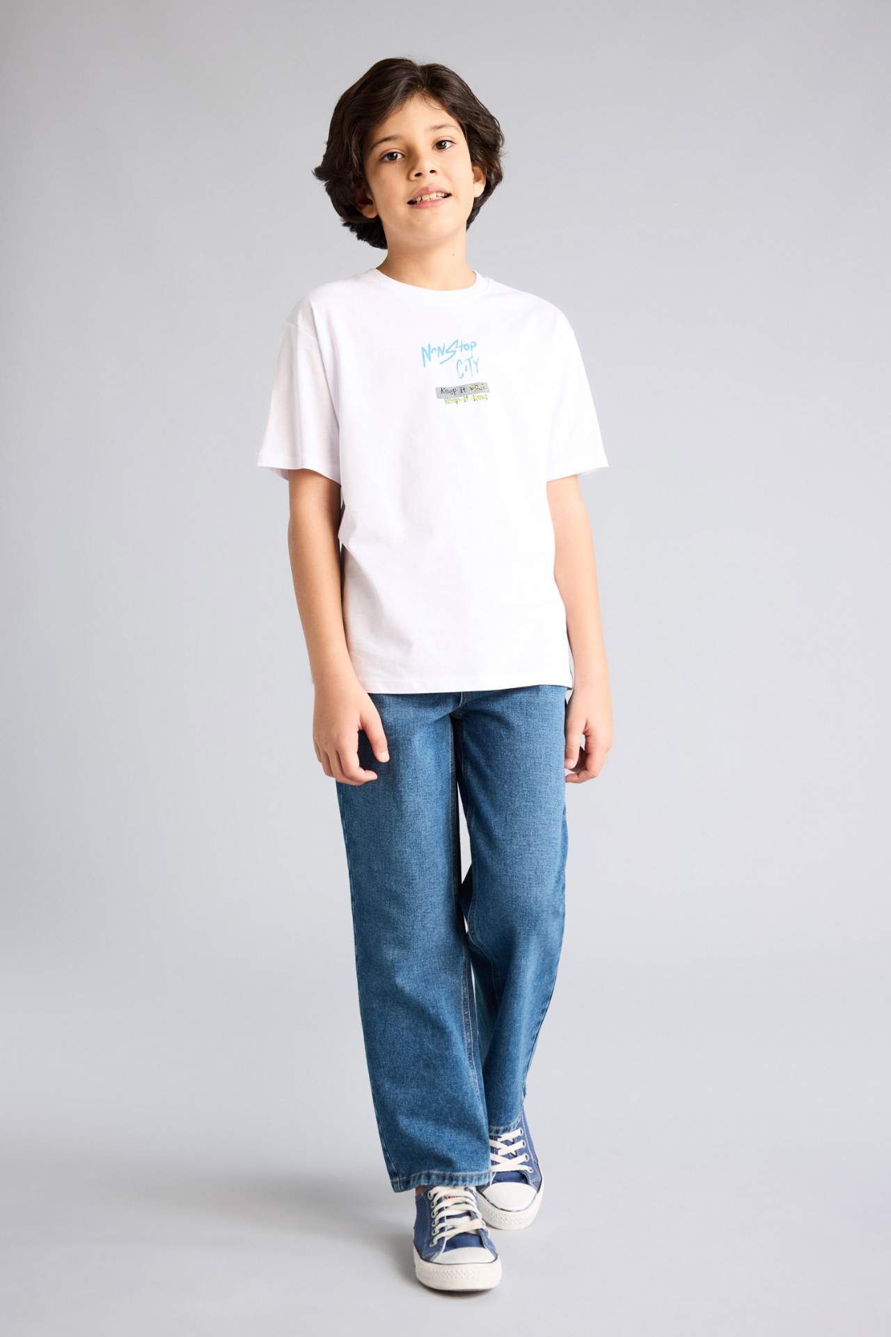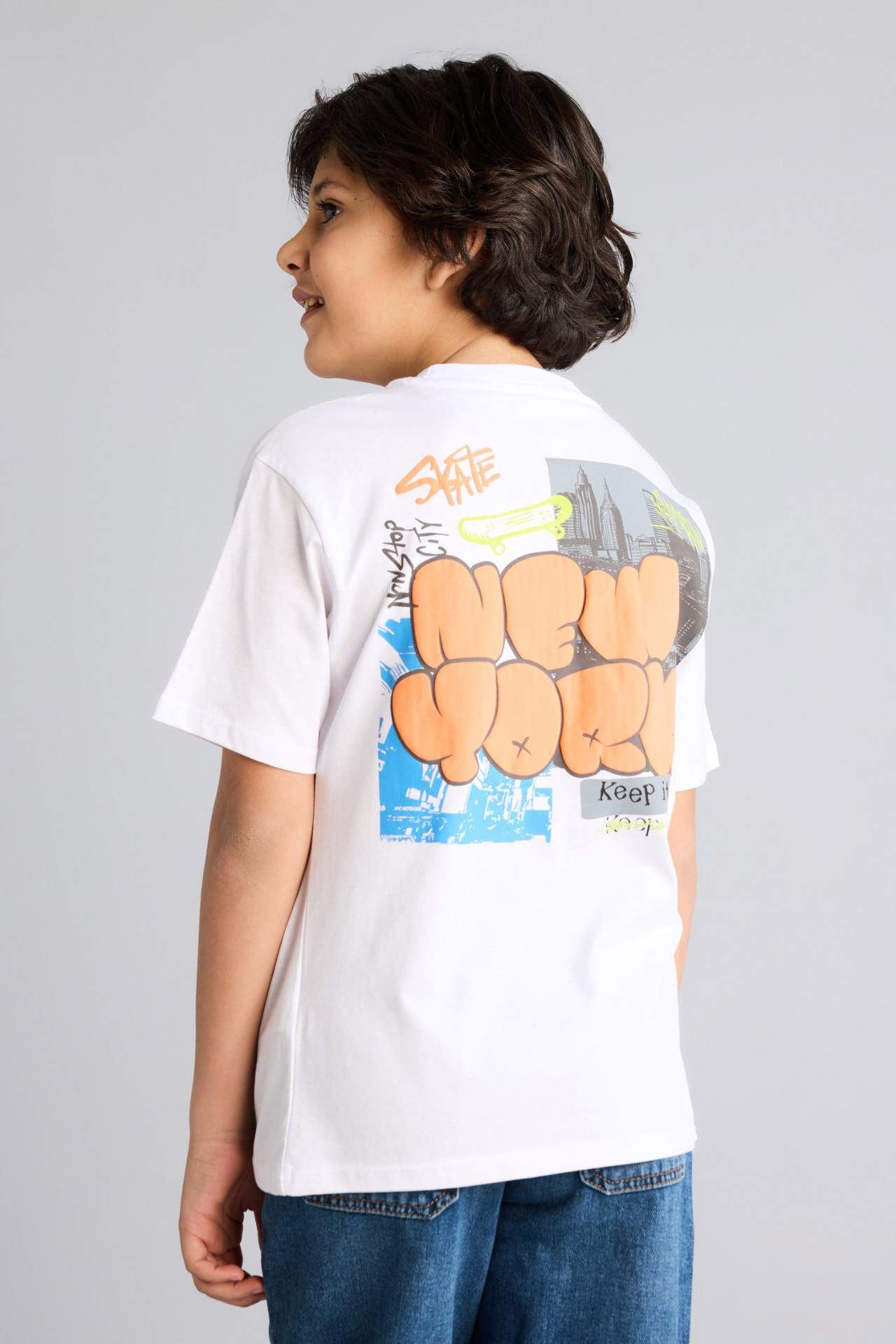 DeFacto Regular Fıt Bisiklet Yaka Baskılı Kısa Kollu Tişört Erkek Çocuk