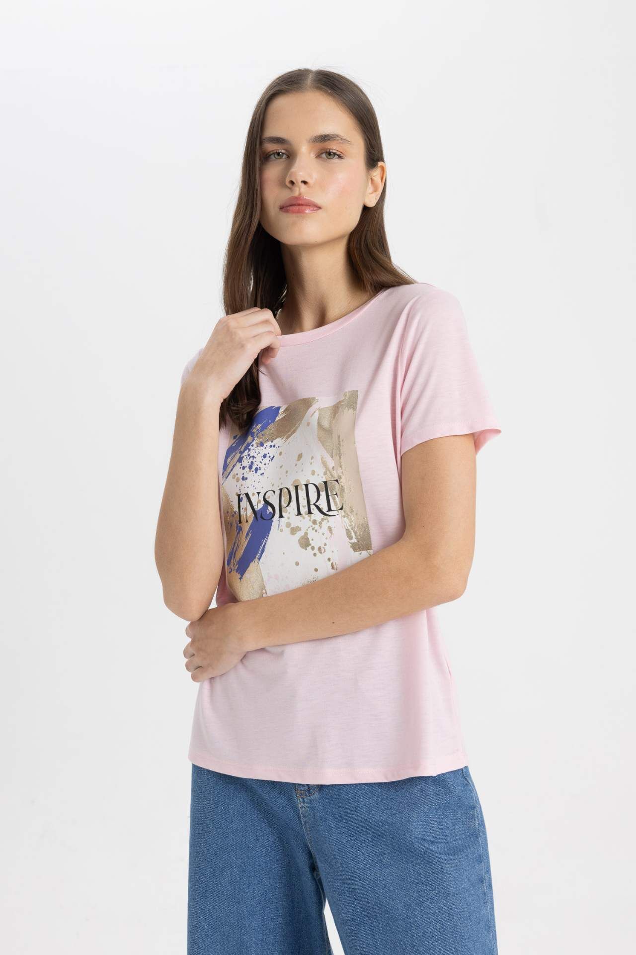DeFacto Regular Fit Bisiklet Yaka Baskılı Kısa Kollu Tişört