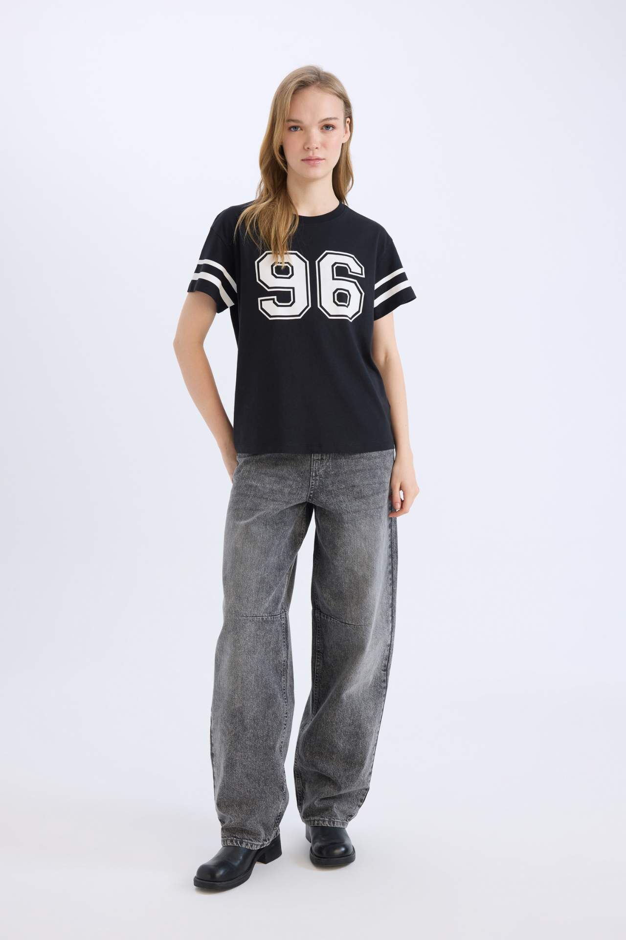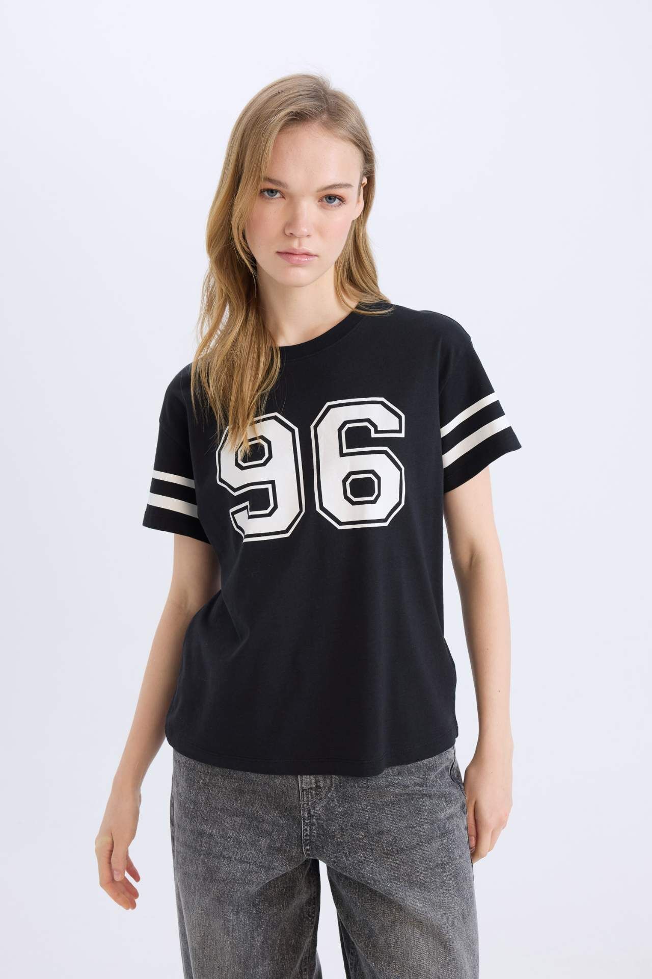 DeFacto Regular Fit Bisiklet Yaka Baskılı Kısa Kollu Tişört D9600AX25SMBK81