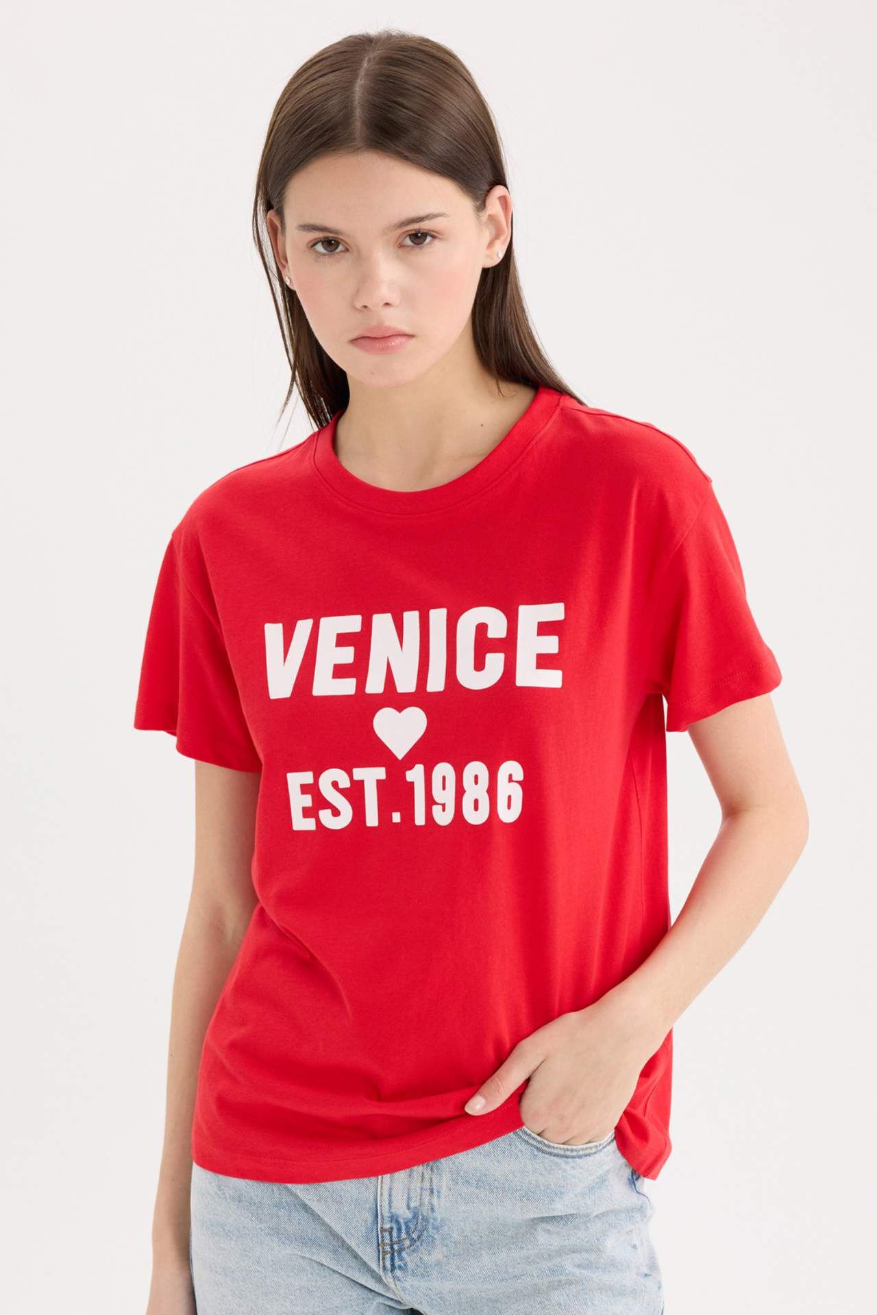 DeFacto Regular Fit Bisiklet Yaka Baskılı Kısa Kollu Tişört D9604AX25SMRD117
