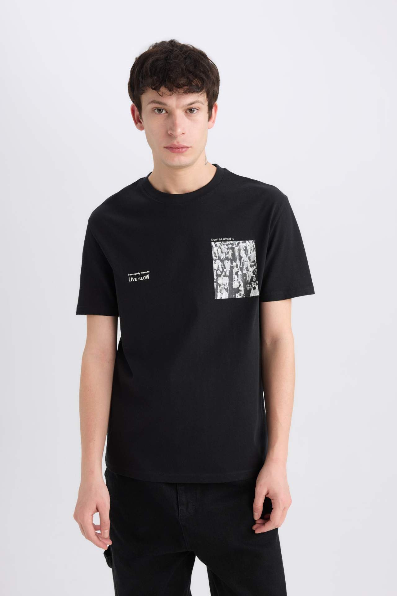 DeFacto Regular Fit Bisiklet Yaka Baskılı Kısa Kollu Tişört E0583AX25SMBK81