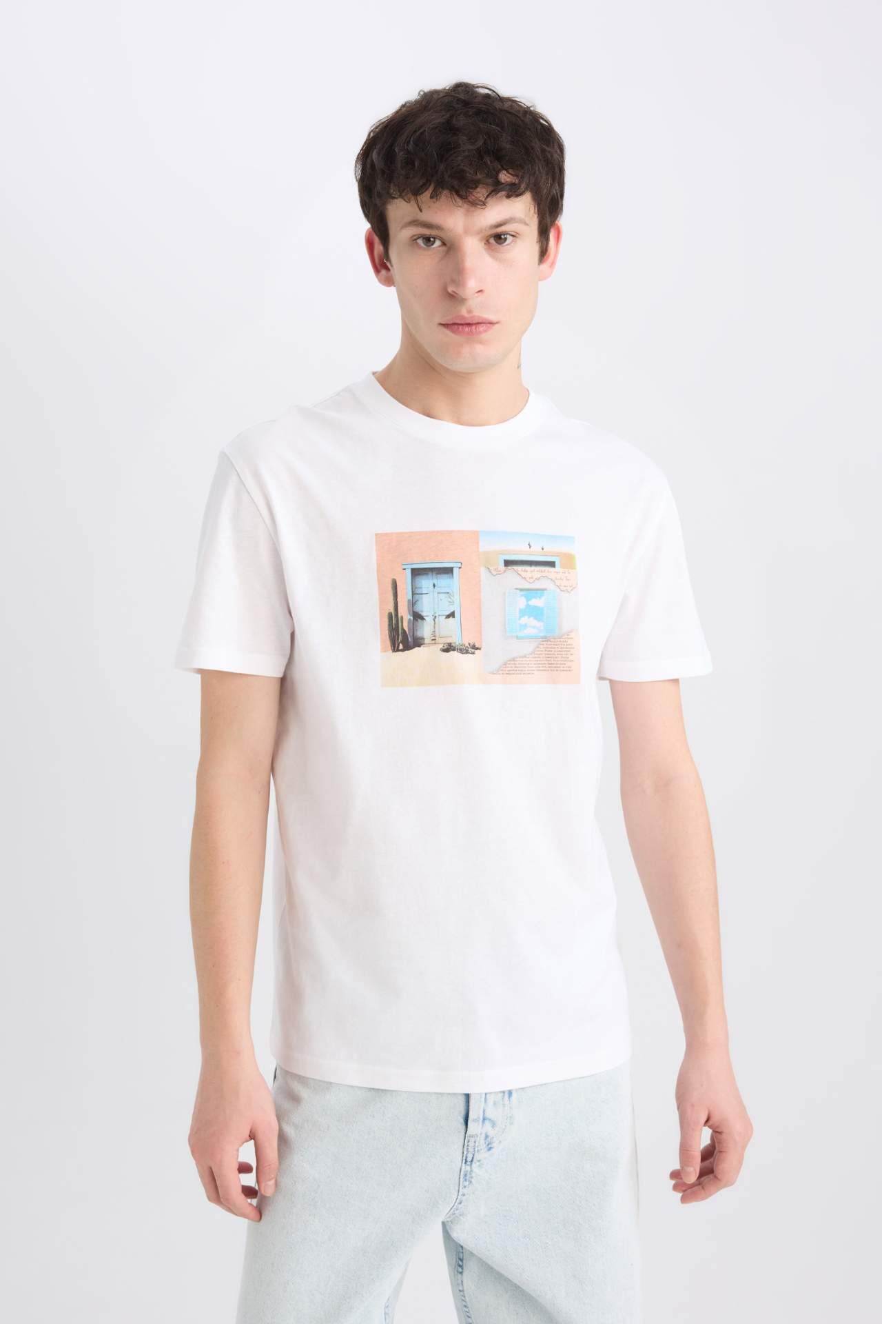 DeFacto Regular Fit Bisiklet Yaka Baskılı Kısa Kollu Tişört E0584AX25SMWT34