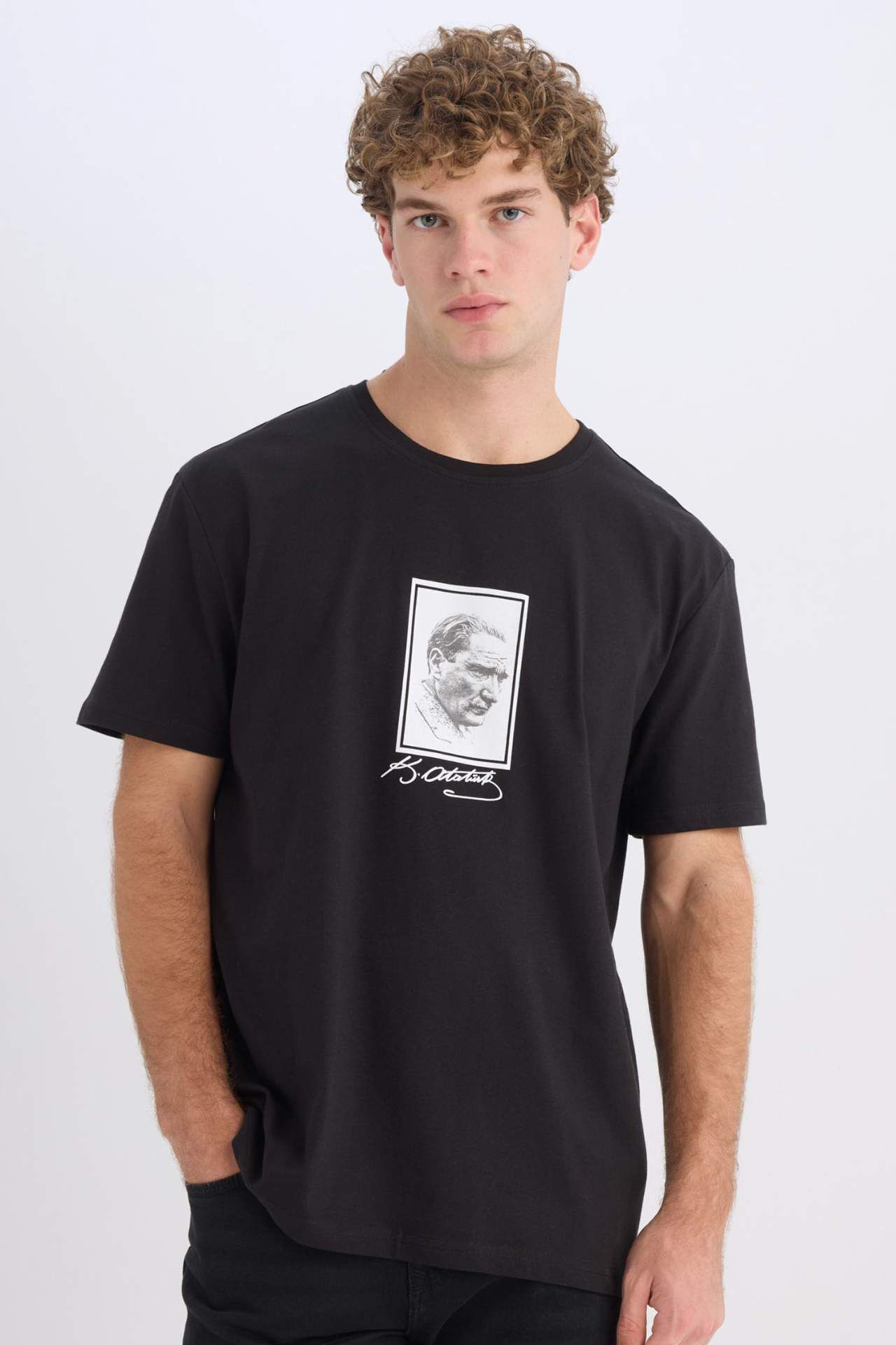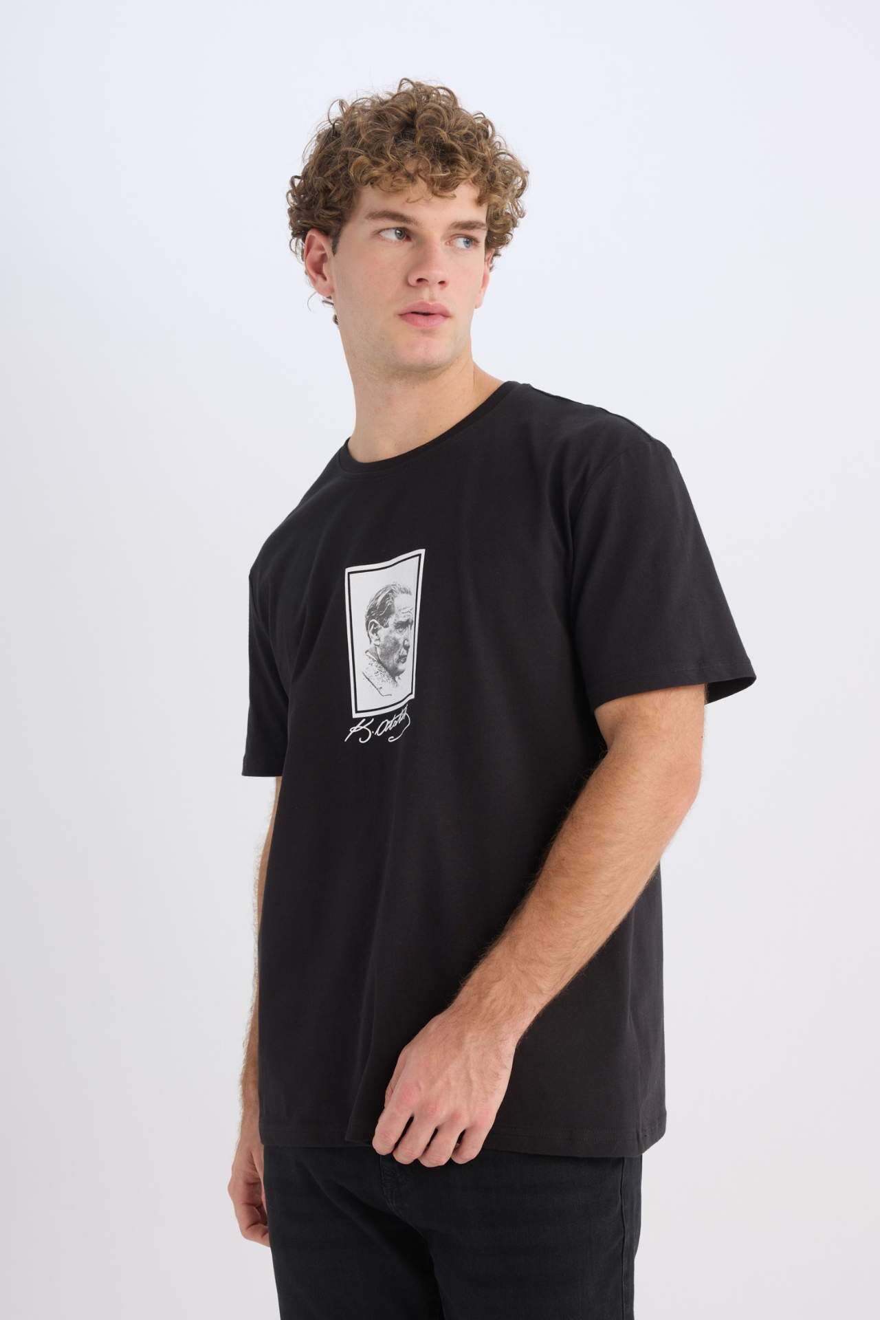 DeFacto Regular Fit Bisiklet Yaka Baskılı Kısa Kollu Tişört E5053AX24AUBK81