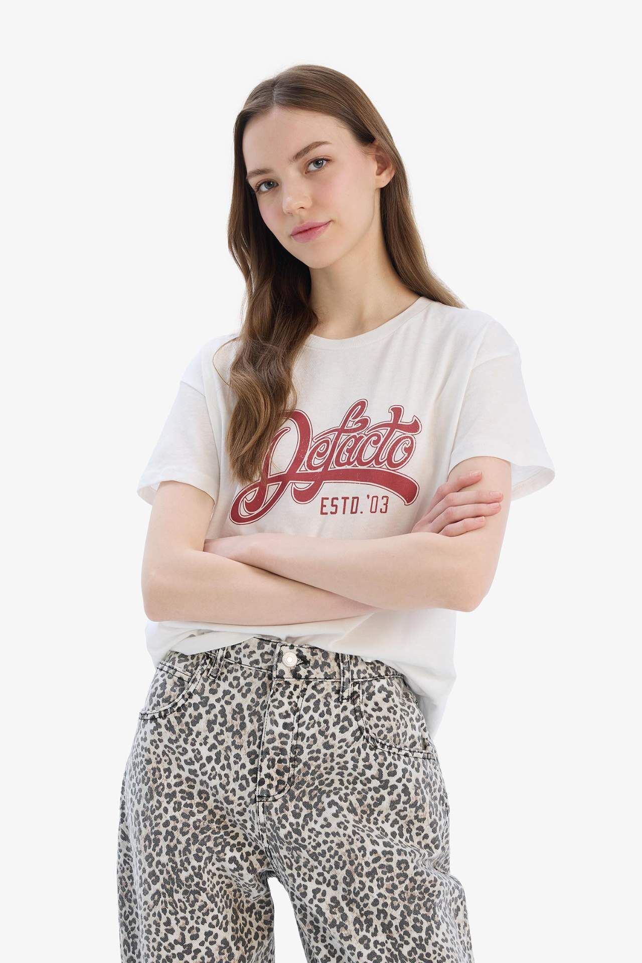 DeFacto Regular Fit Bisiklet Yaka Baskılı Kısa Kollu Tişört F1209AX25SPWT32