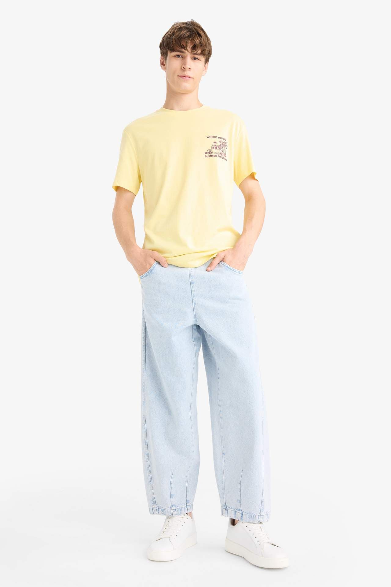 Regular fit kesimi ve bisiklet yaka tasarımıyla rahat bir kullanım sunan bu baskılı kısa kollu tişört, şık ve sade bir stil yaratır. Canlı baskılarıyla dikkat çekerken, nefes alabilen kumaşı gün boyu konfor sağlar. Hem günlük hem spor kombinlere kolayca uyum sağlar. Pamuk 100%,Pamuk 100%,Pamuk 100%,Pamuk 100%,Pamuk 100%,Pamuk 100% Manken Bedeni: Göğüs: 95 Boy: 1,88 Basen: 93 Bel: 77