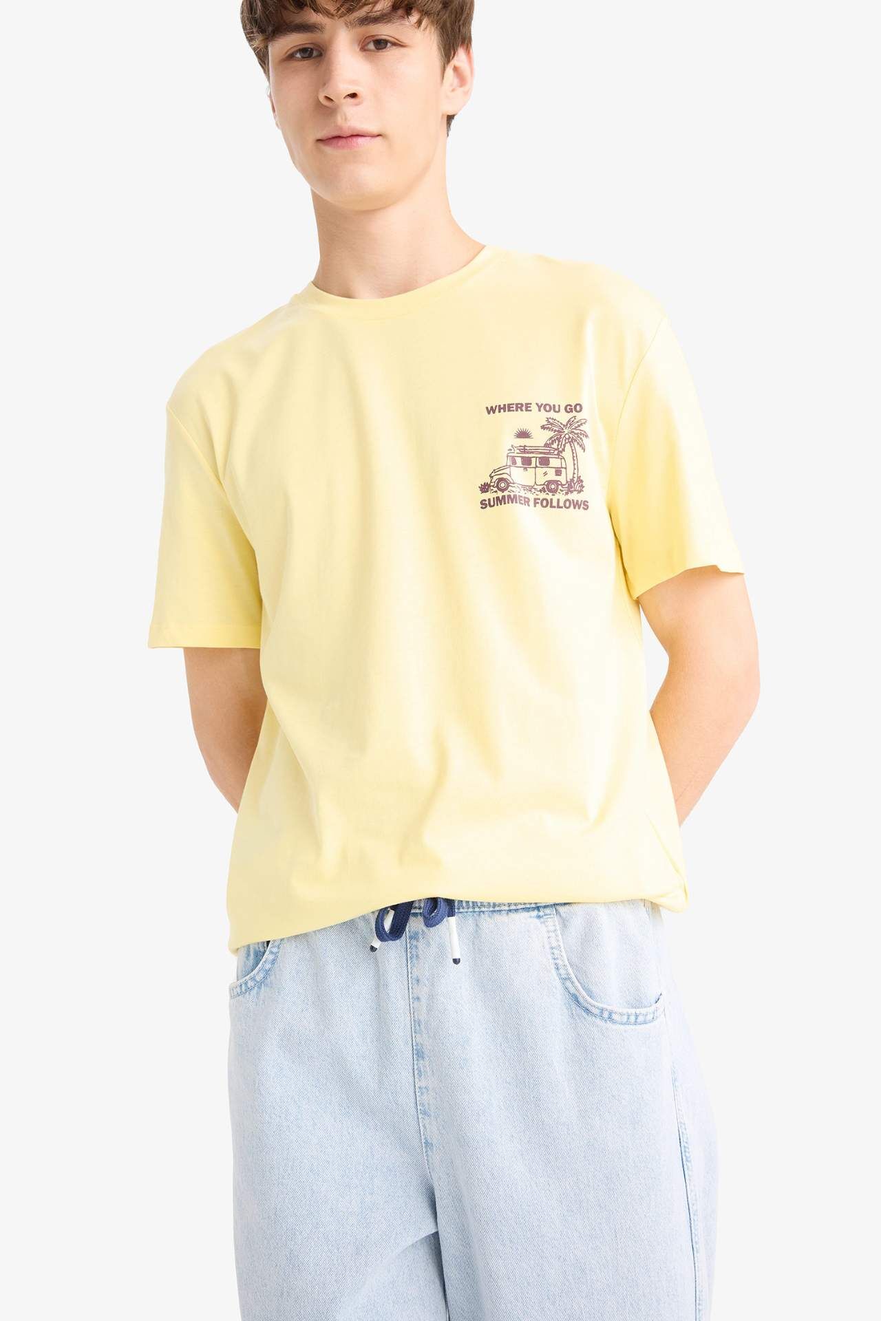 DeFacto Regular Fit Bisiklet Yaka Baskılı Kısa Kollu Tişört F8542AX25HSYL115
