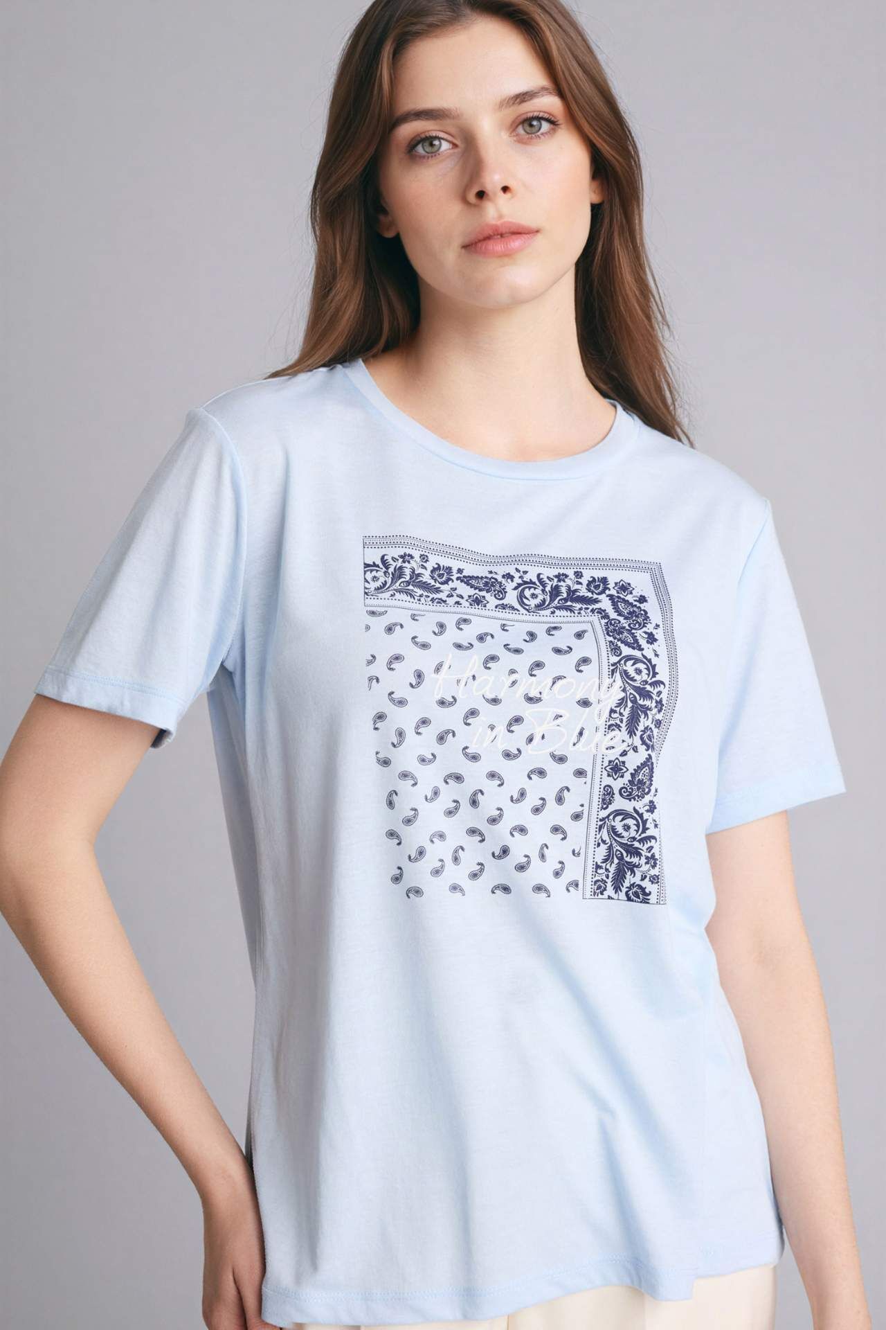 Regular Fıt Bisiklet Yaka Baskılı Kısa Kollu Tişört