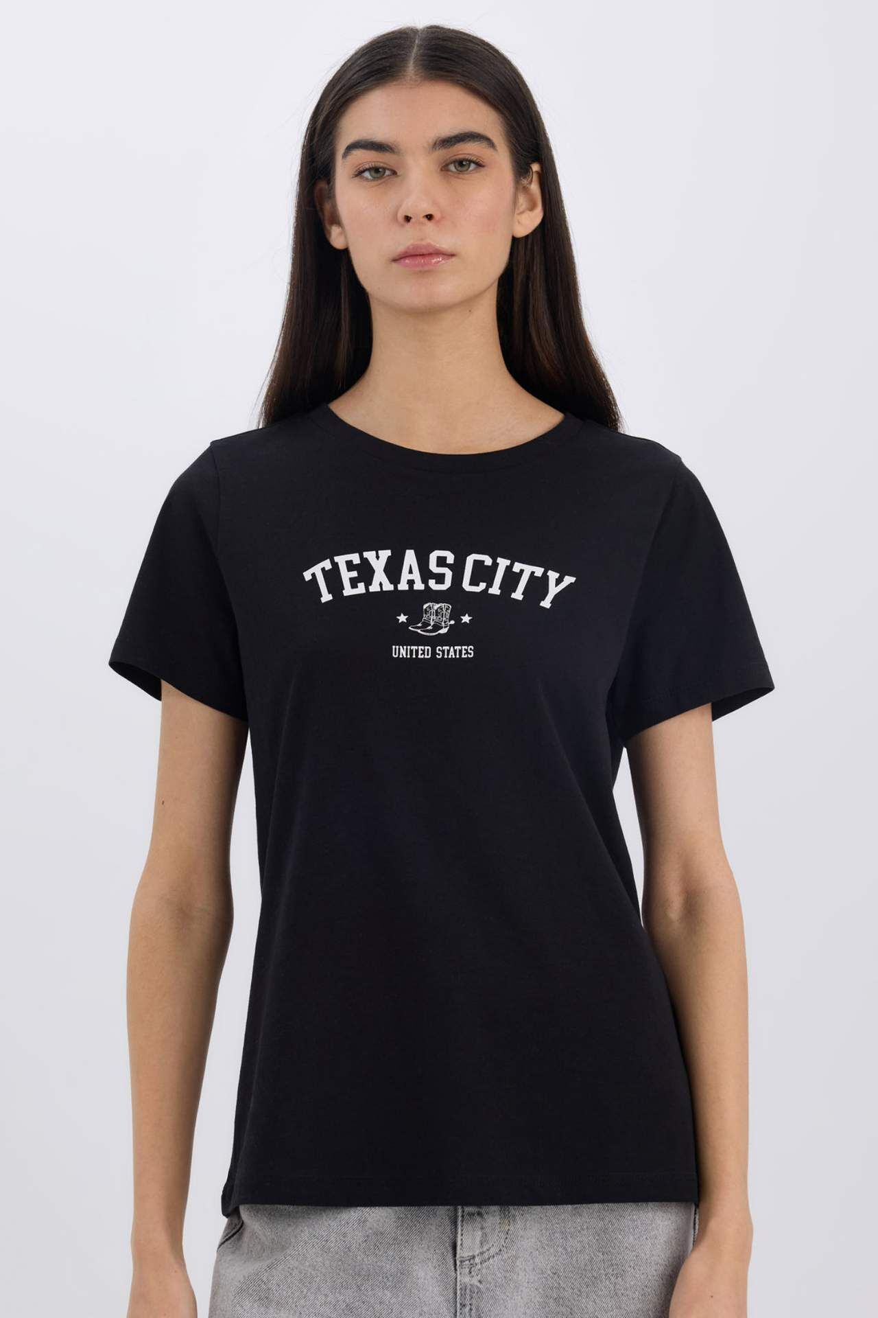 Regular Fit Bisiklet Yaka Baskılı Penye Kısa Kollu Tişört E0560AX25SPBK81