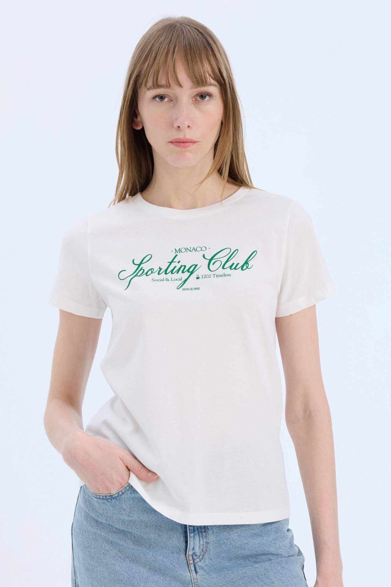 Regular Fit Bisiklet Yaka Baskılı Penye Kısa Kollu Tişört E0609AX25SPER105