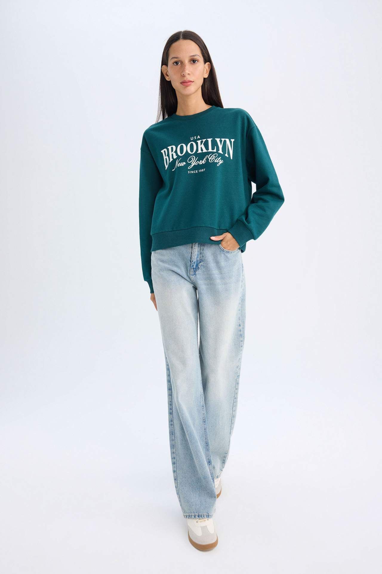 DeFacto Regular Fit Bisiklet Yaka Baskılı Sweatshirt D5928AX24AUGN1040