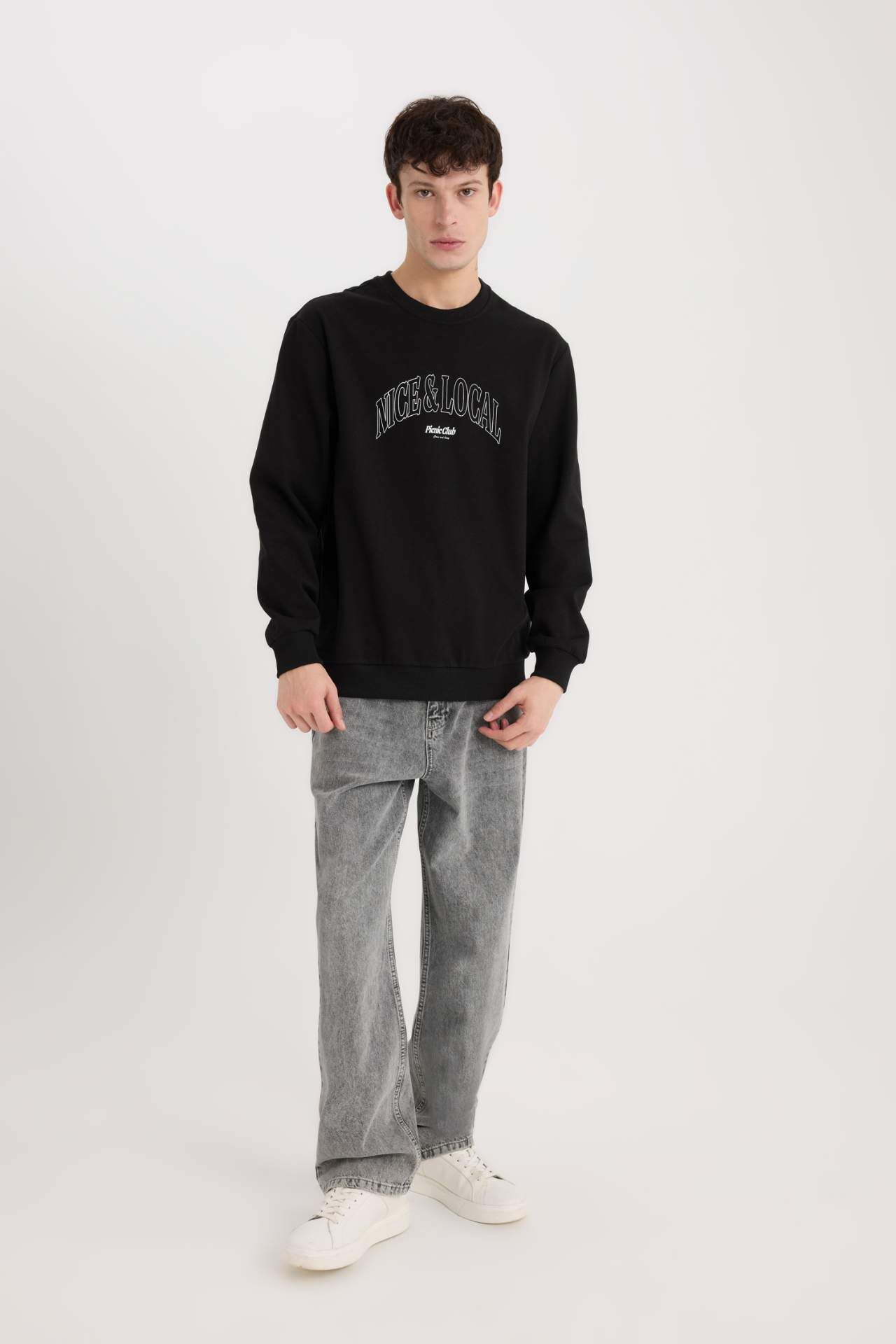 Regular Fit Bisiklet Yaka Baskılı Sweatshirt