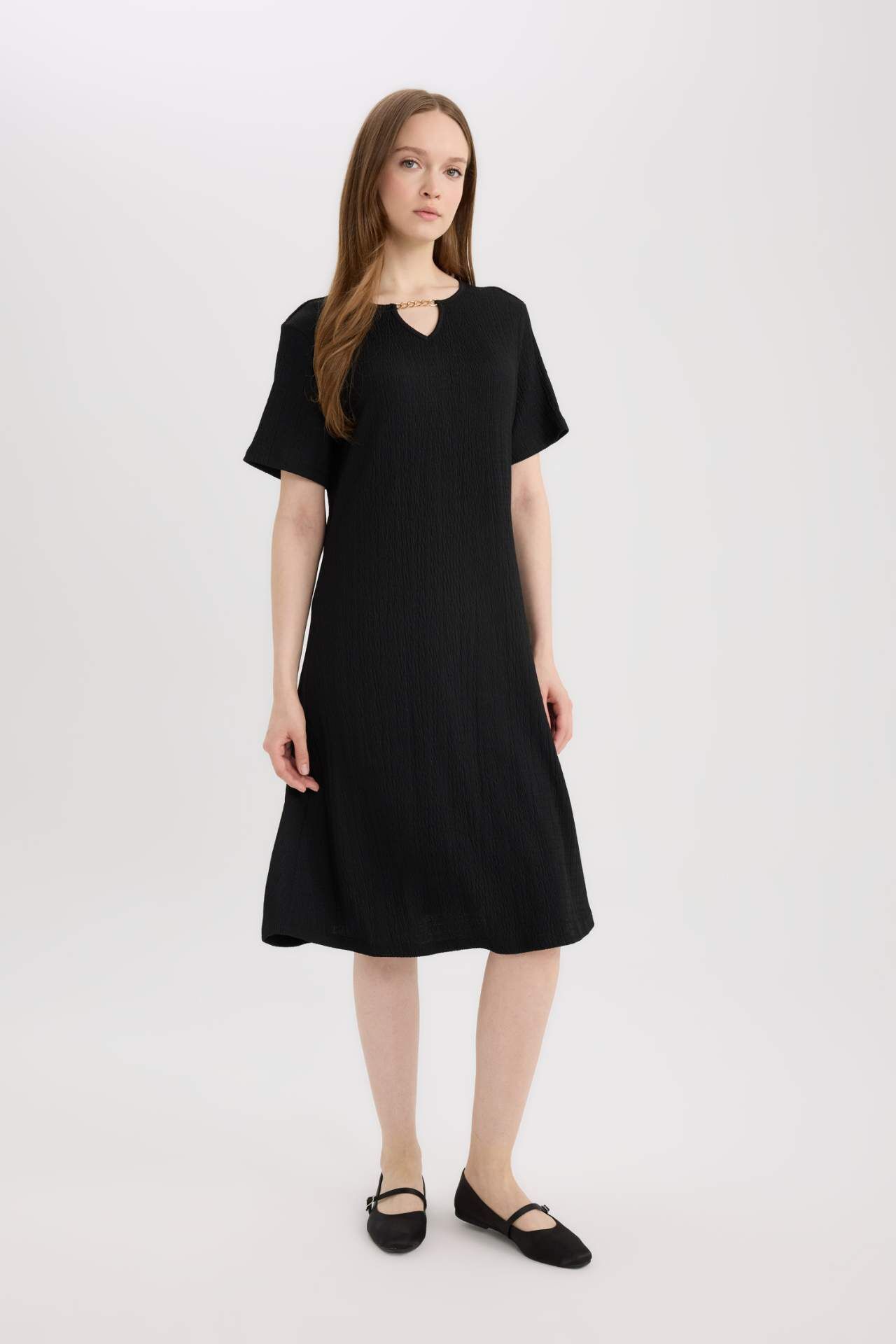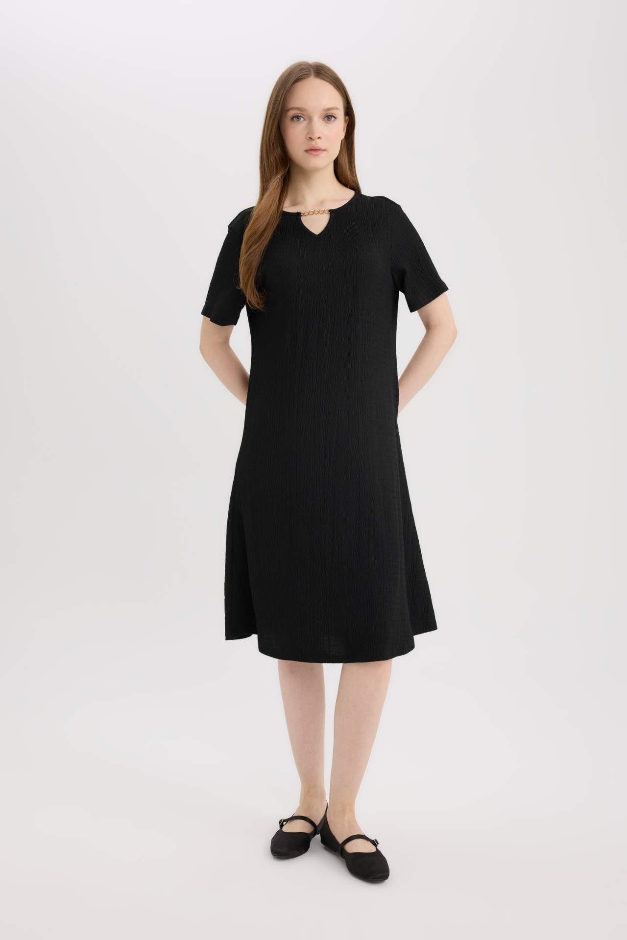 Regular Fit Bisiklet Yaka Bürümcük Kısa Kollu Elbise