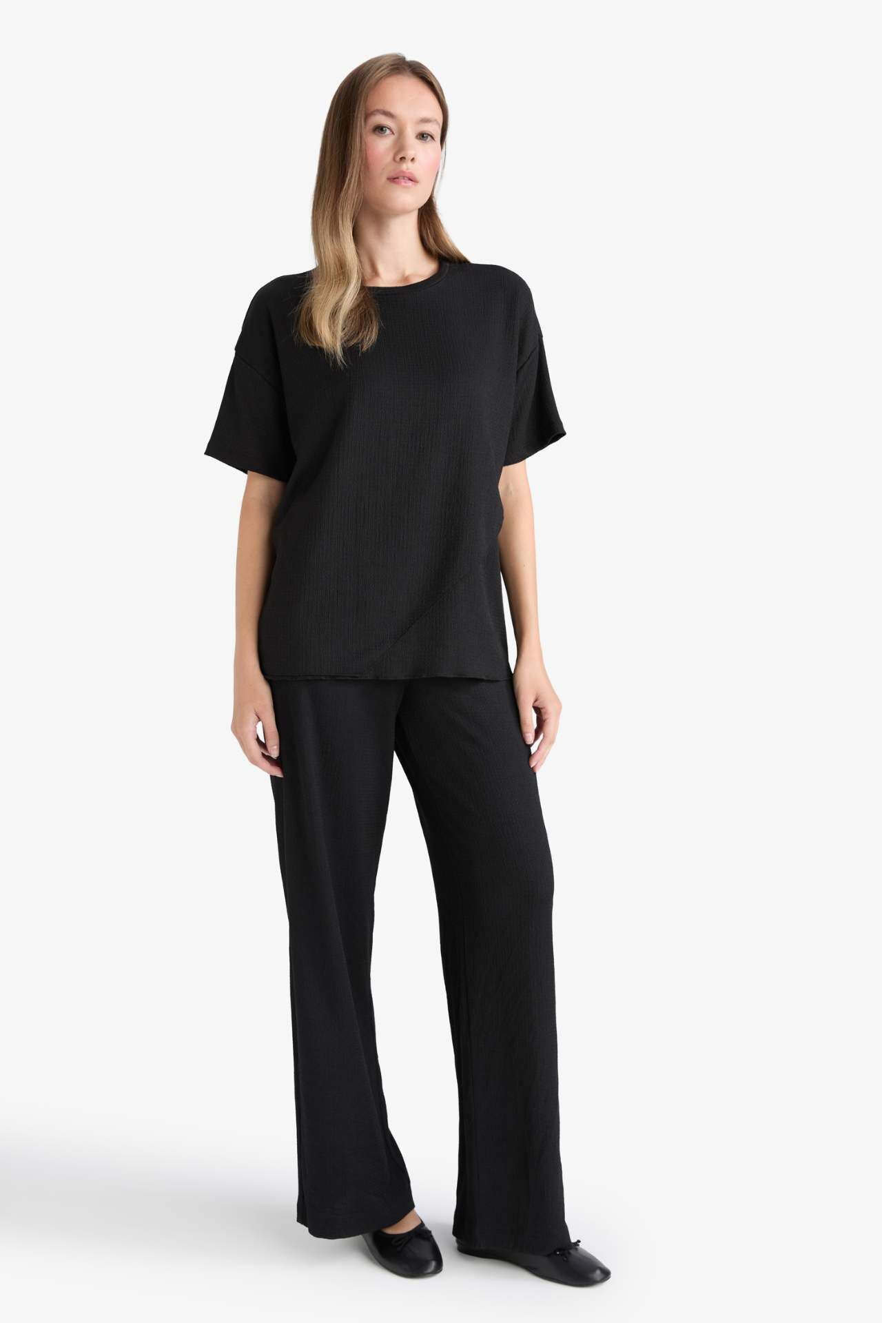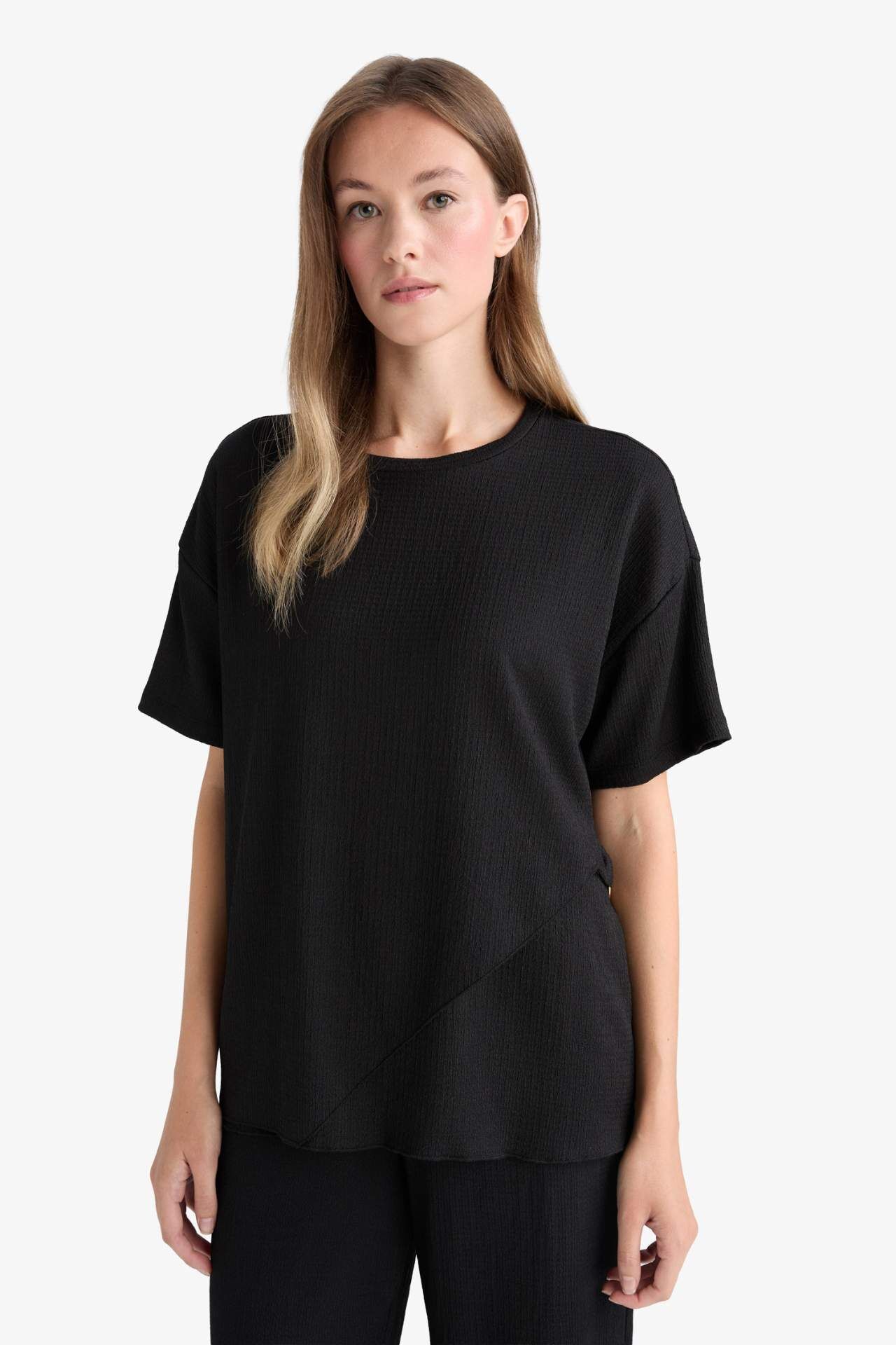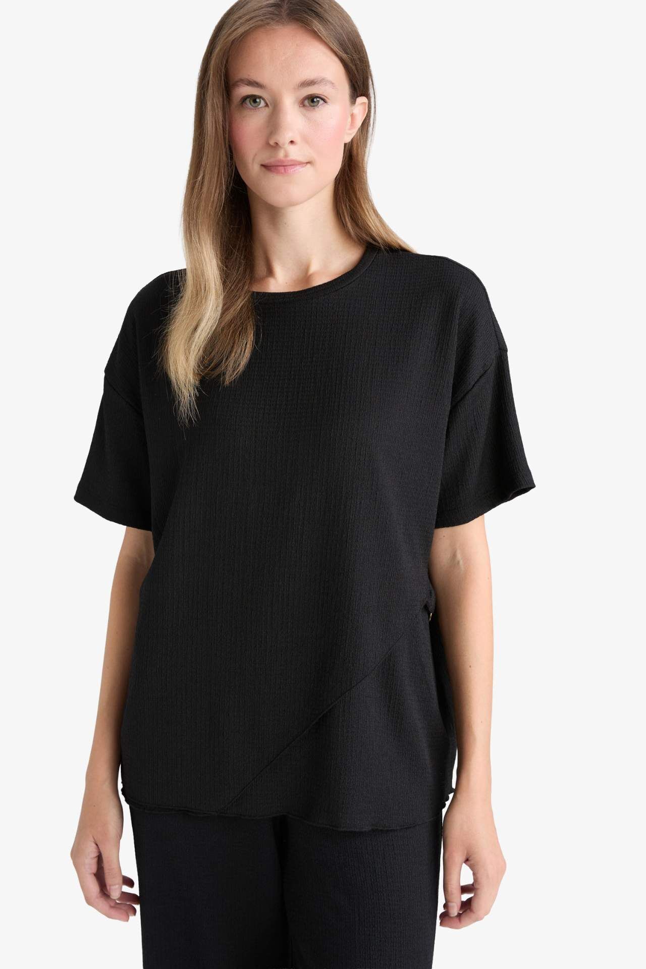 DeFacto Regular Fit Bisiklet Yaka Bürümcük Kısa Kollu Tişört F6505AX25AUBK81