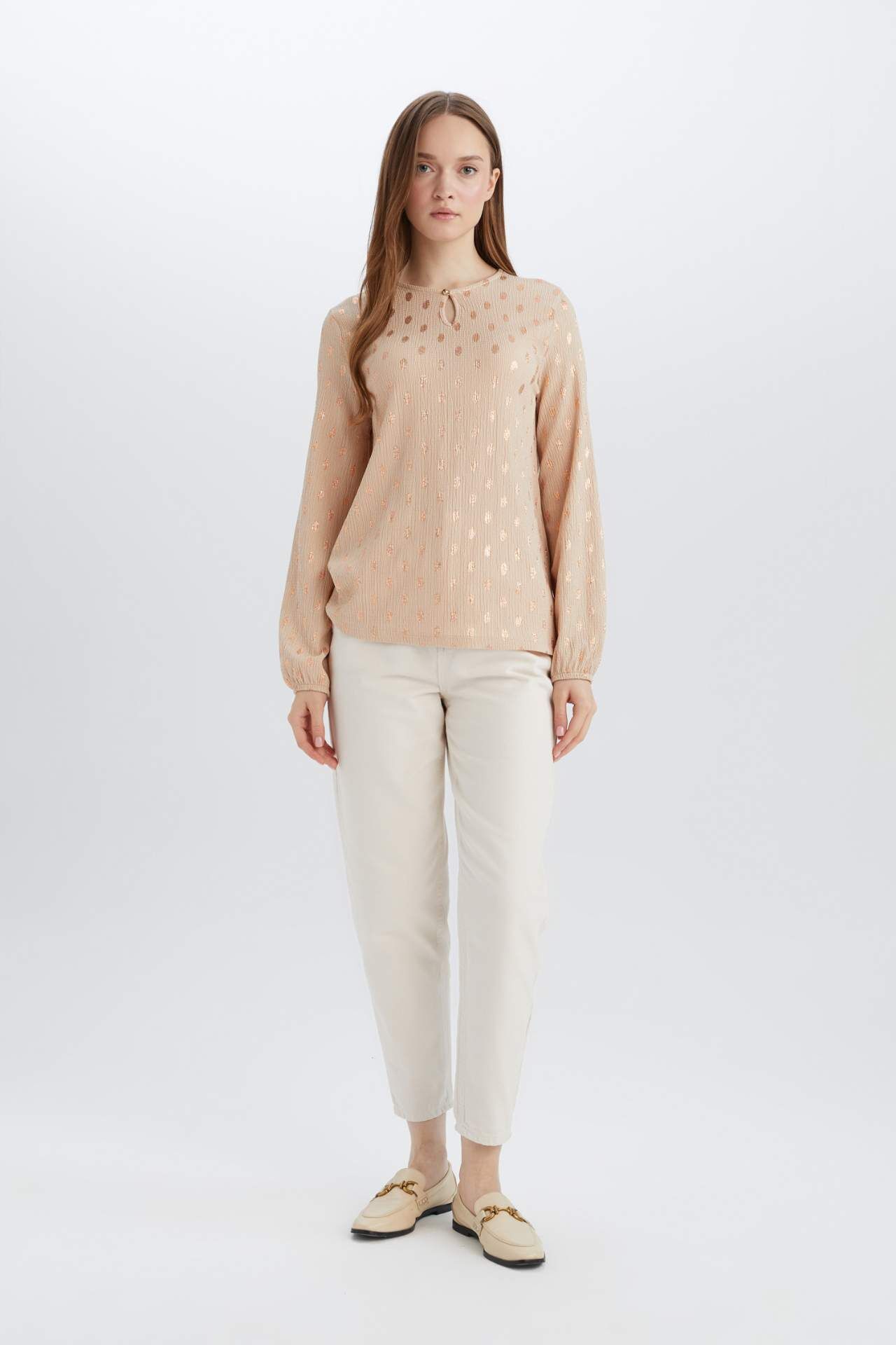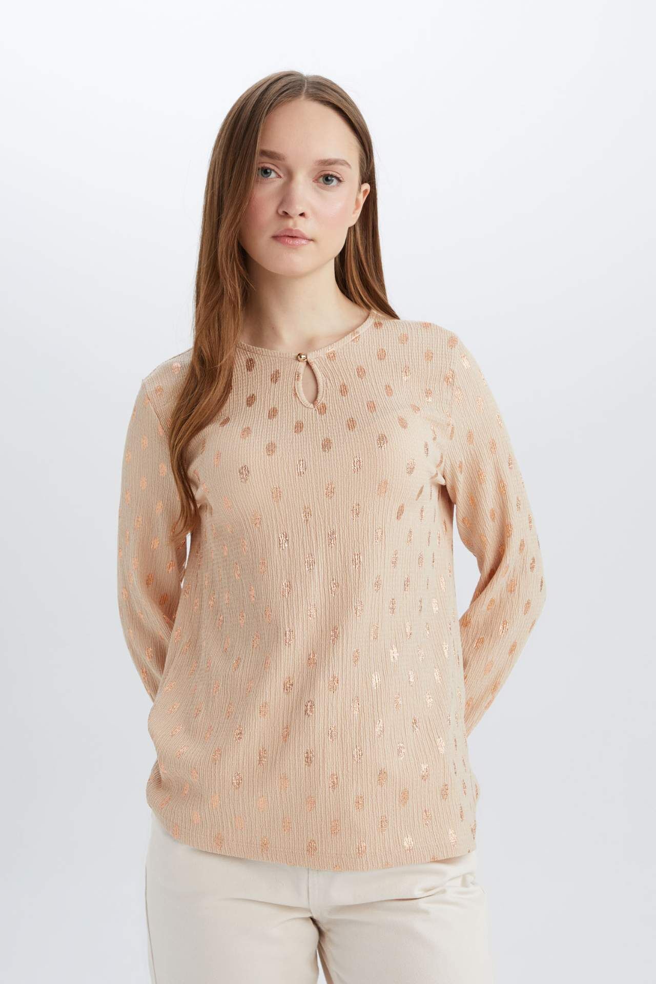 DeFacto Regular Fit Bisiklet Yaka Casual Bürümcük Uzun Kollu Tişört