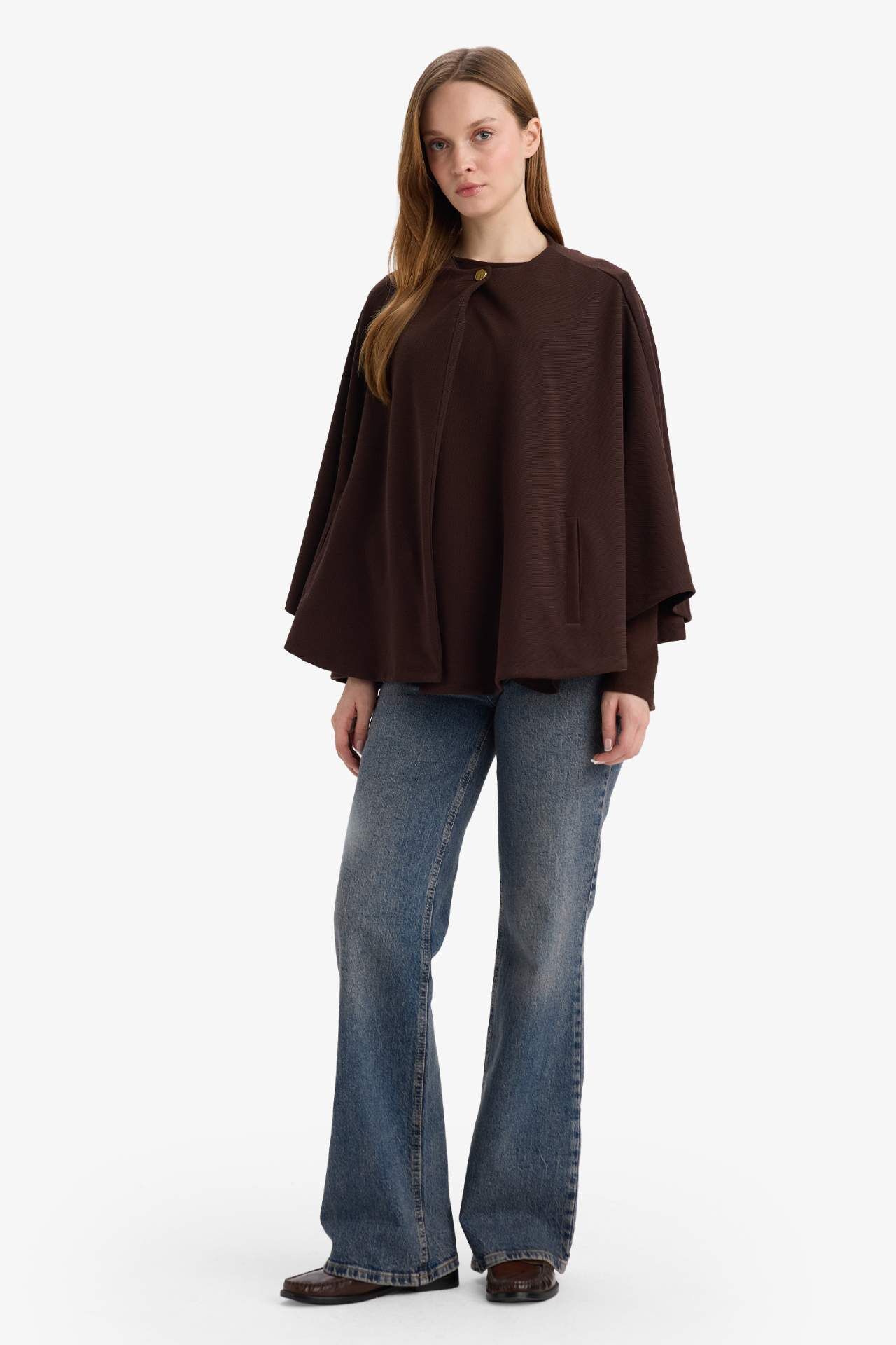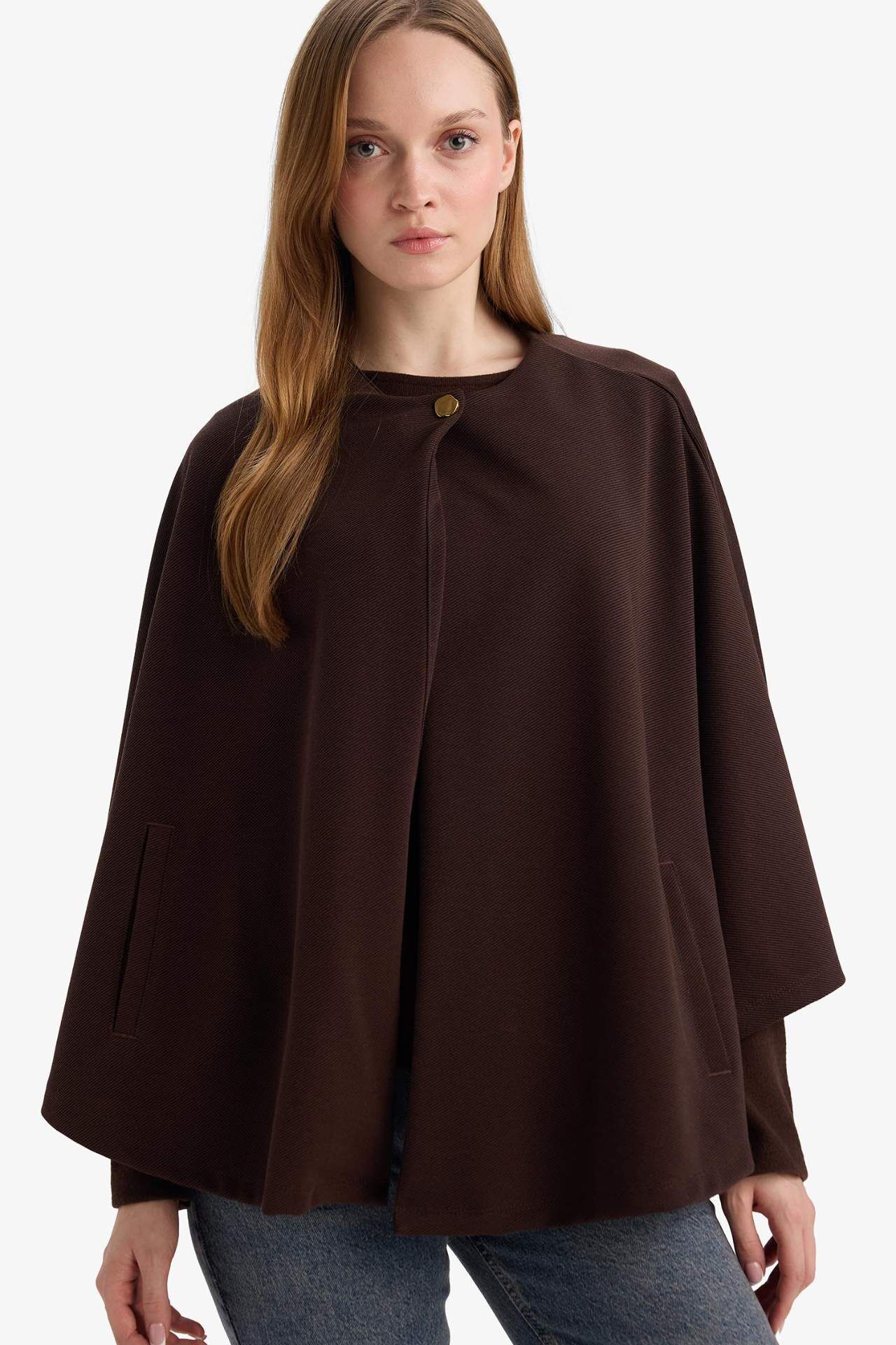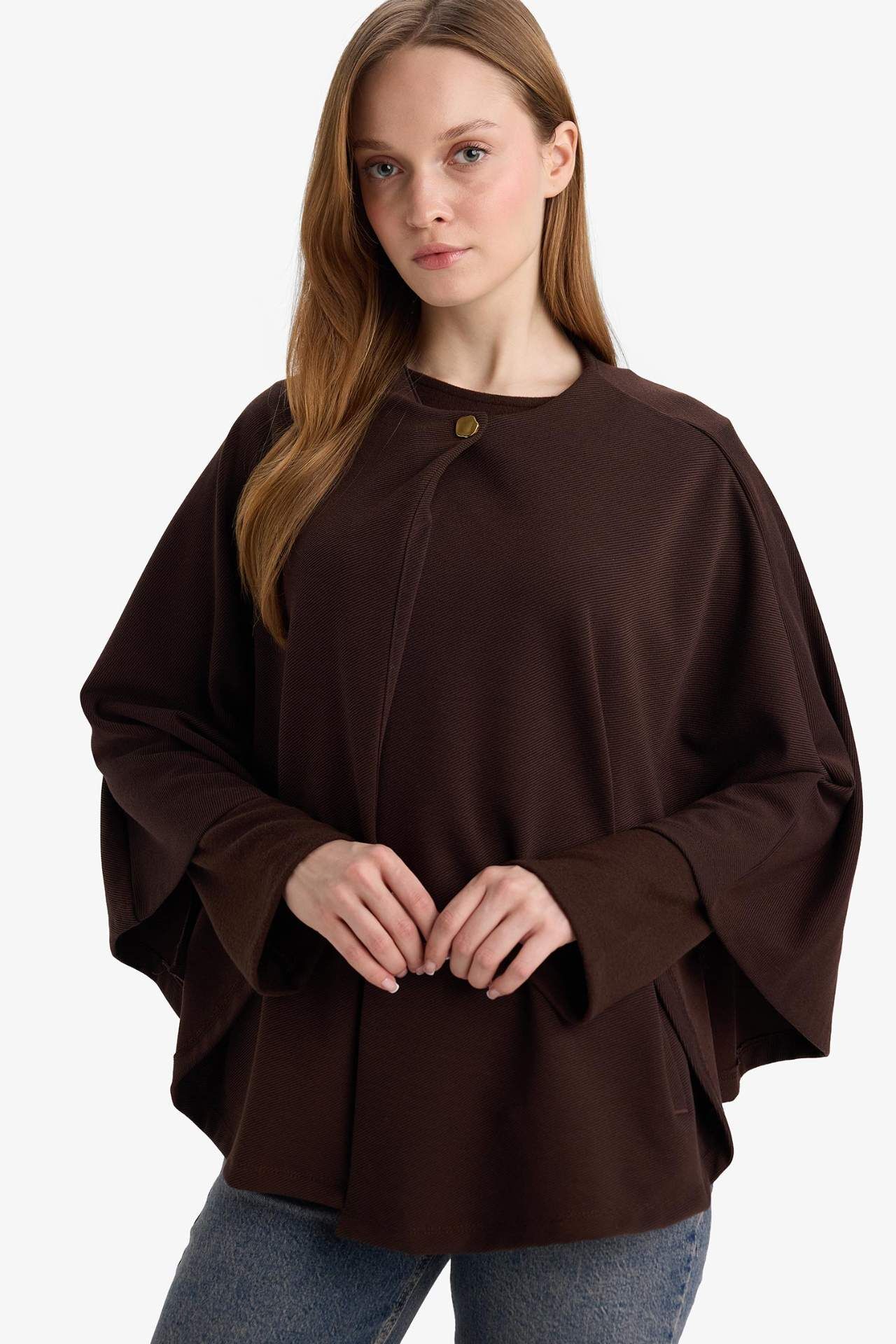 Regular Fit Bisiklet Yaka Cepli Pelerin Hırka