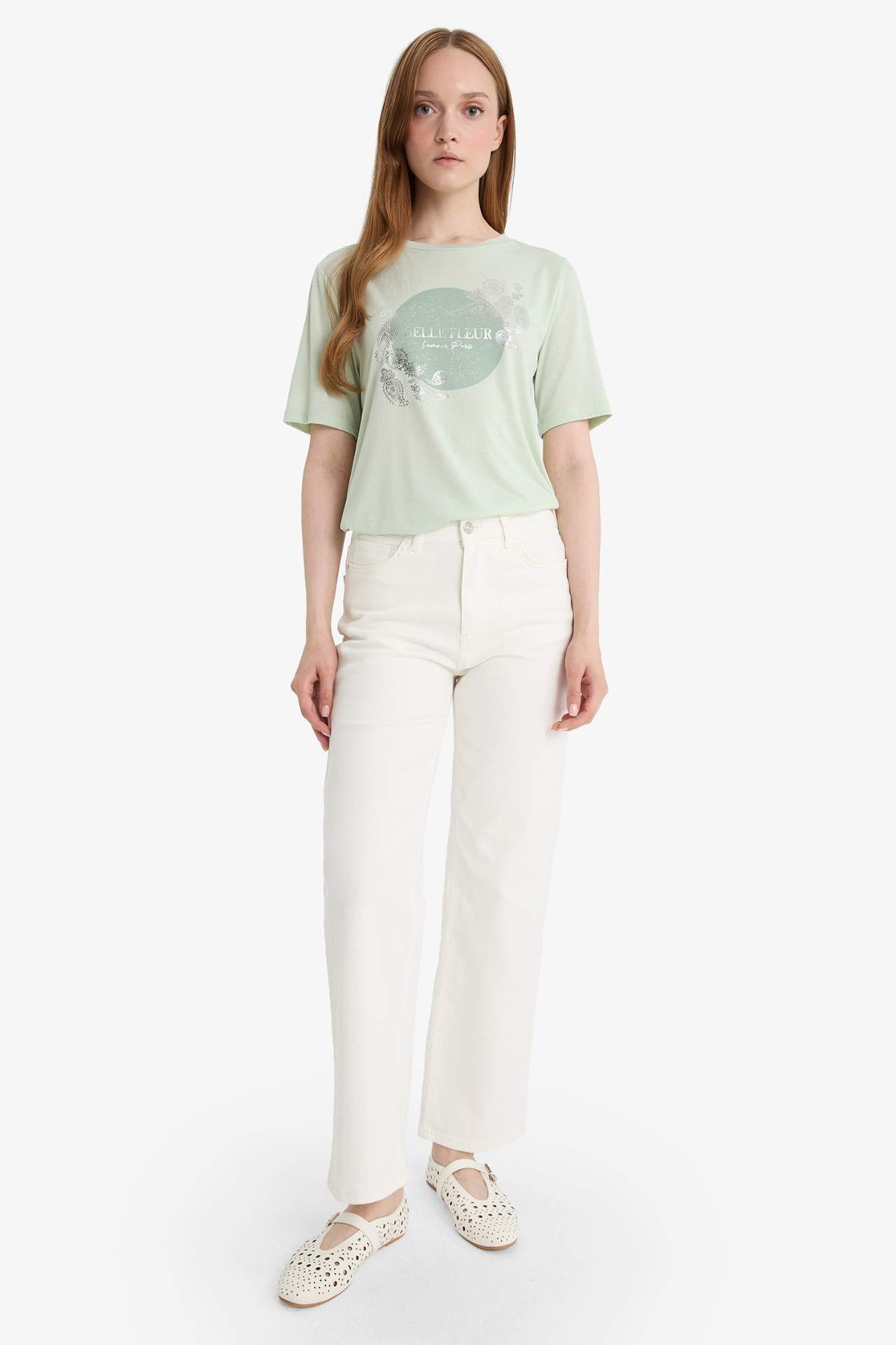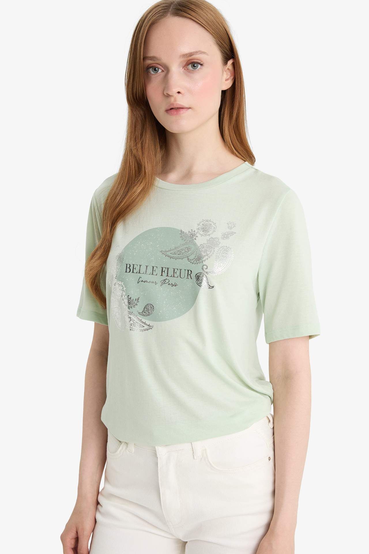 DeFacto Regular Fit Bisiklet Yaka Çiçekli Kısa Kollu Tişört