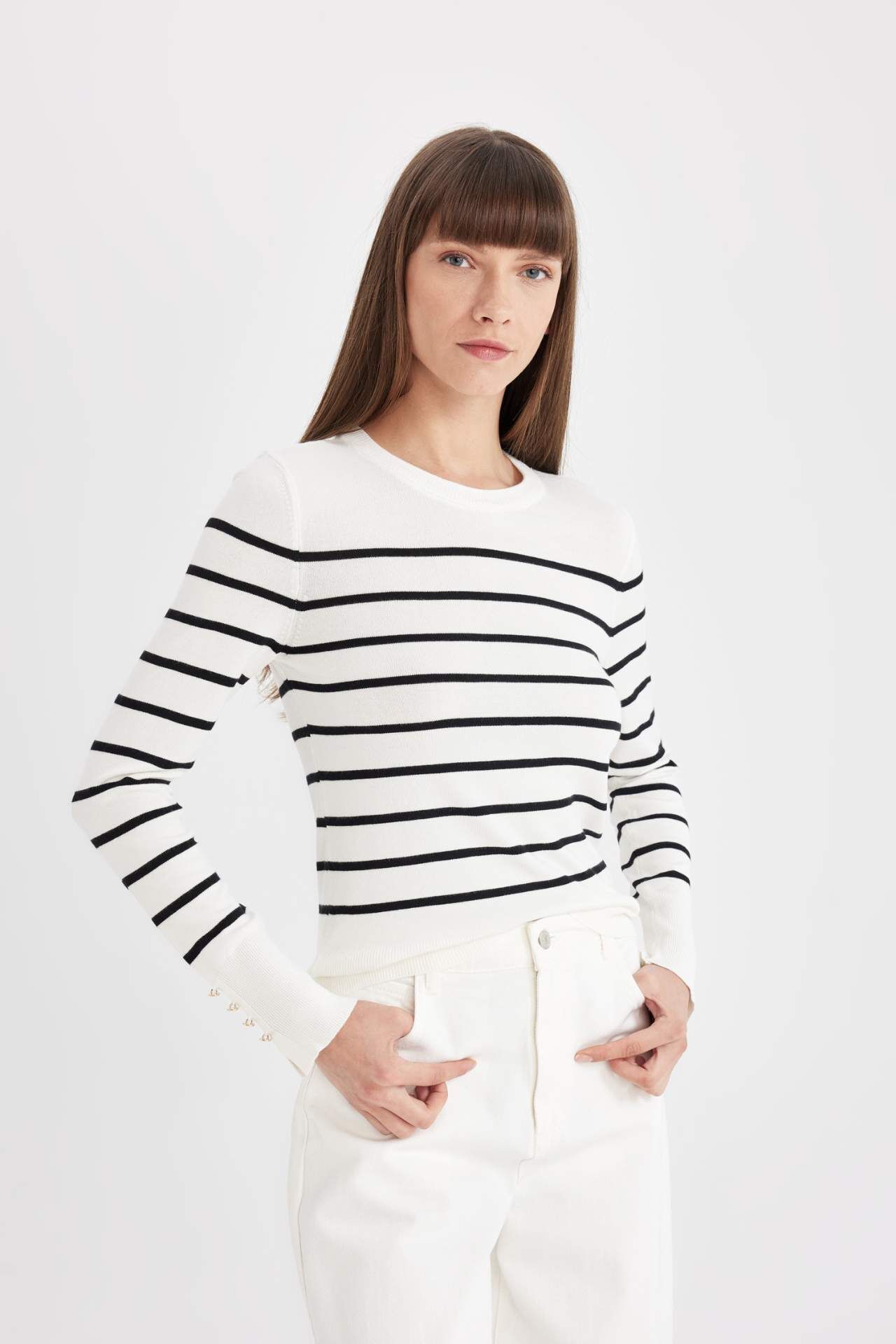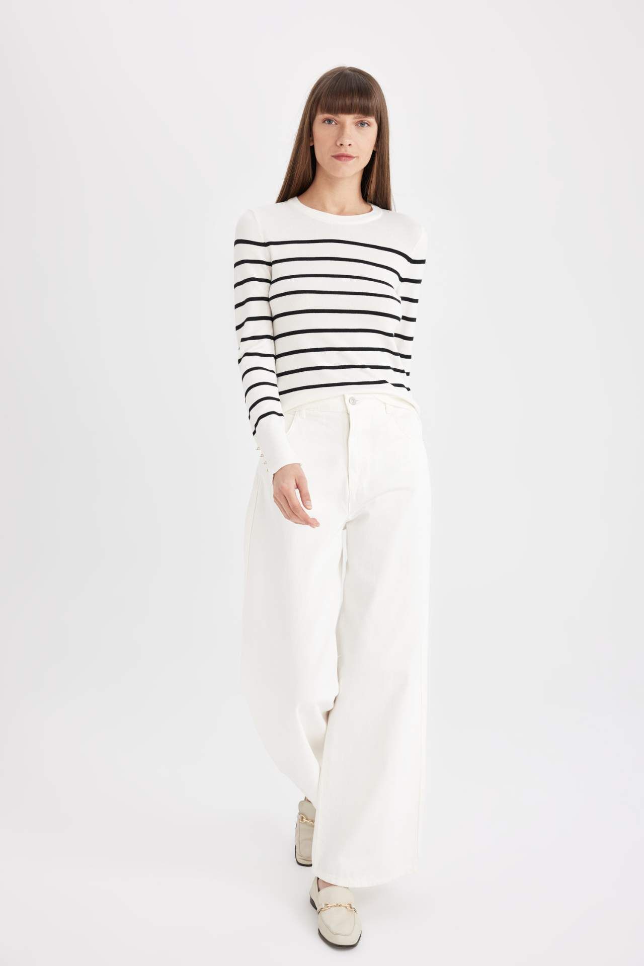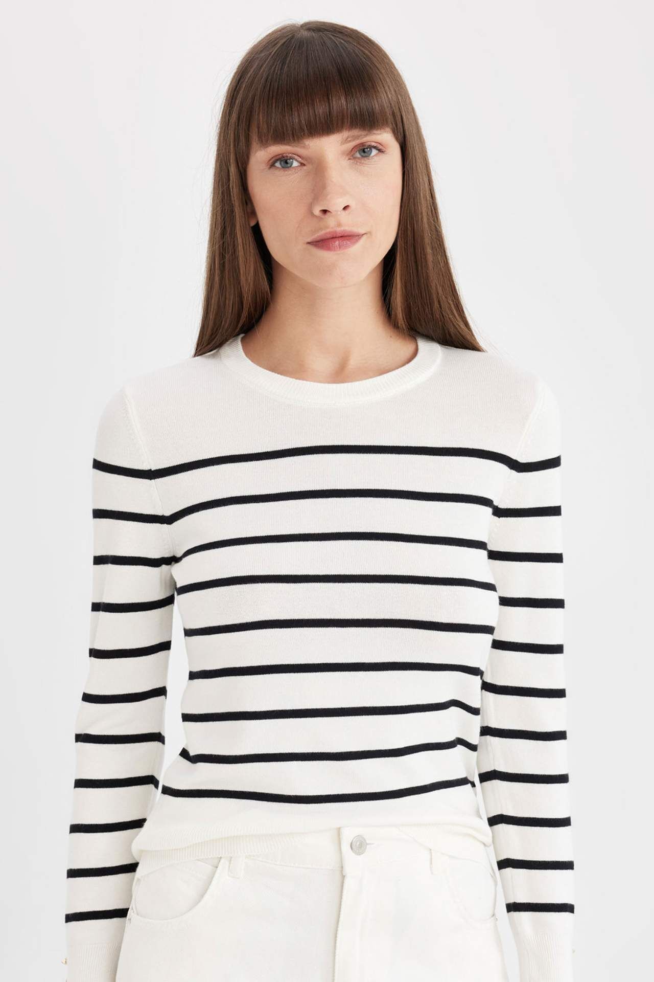 DeFacto DeFactoFit Regular Fit Bisiklet Yaka Çizgili Kazak A8490AX24AUER105