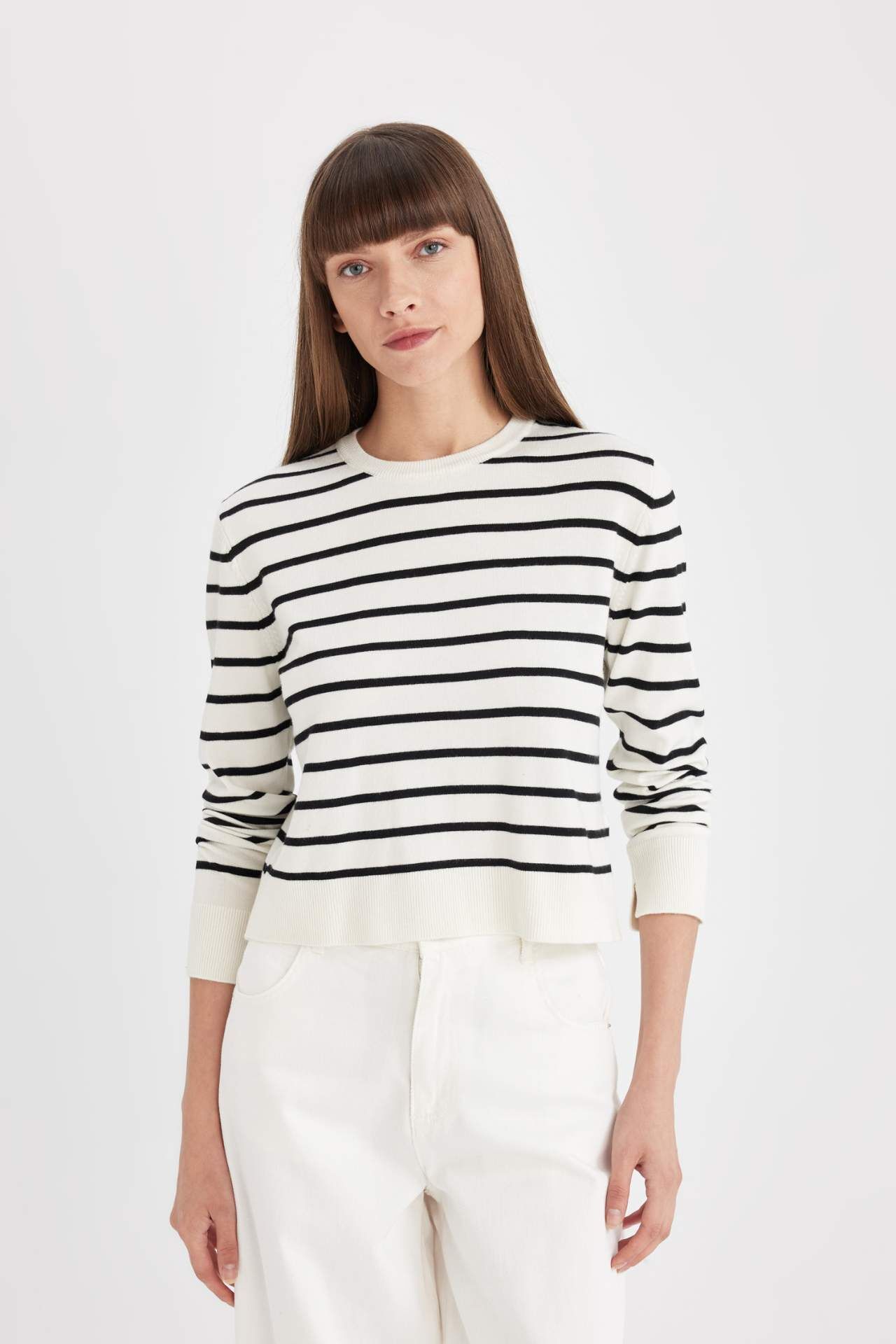 DeFacto DeFactoFit Regular Fit Bisiklet Yaka Çizgili Kazak C5261AX24AUER105