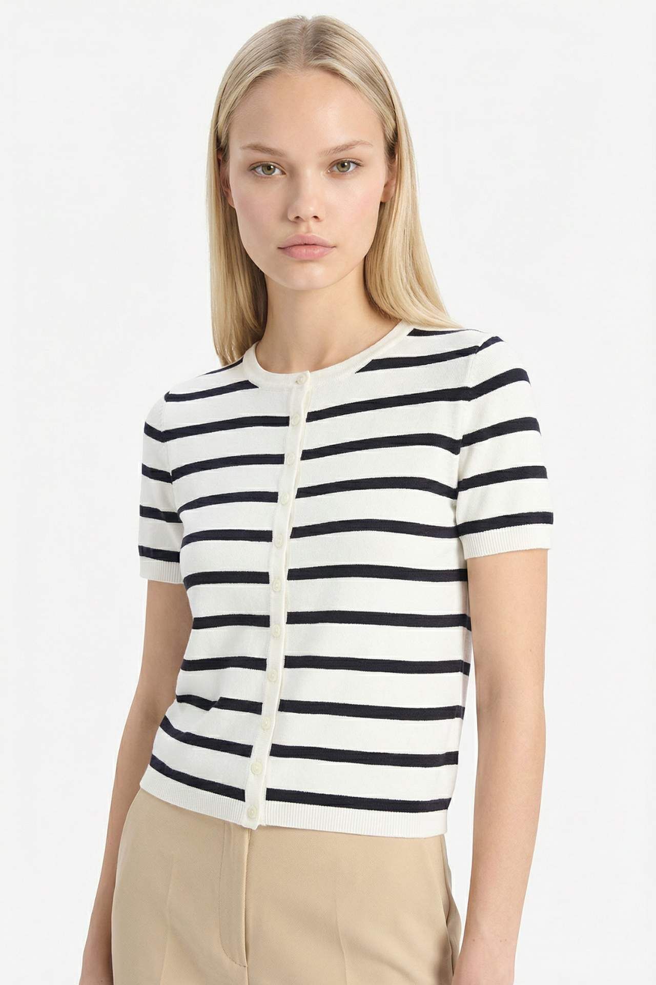 DeFacto Regular Fit Bisiklet Yaka Çizgili Kısa Kollu Hırka